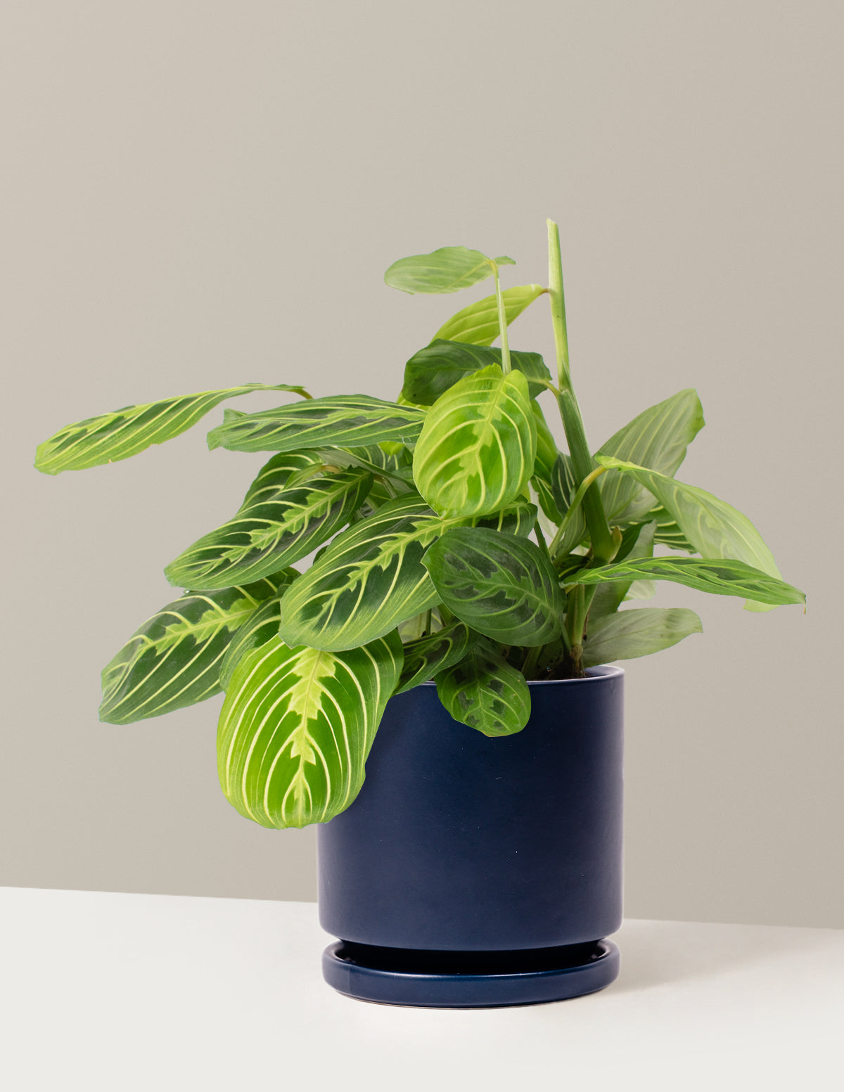 The Lemon Lime Prayer Plant is pet-safe, beginner-friendly, and perfect for brightening shelves, tables, or low-light corners.