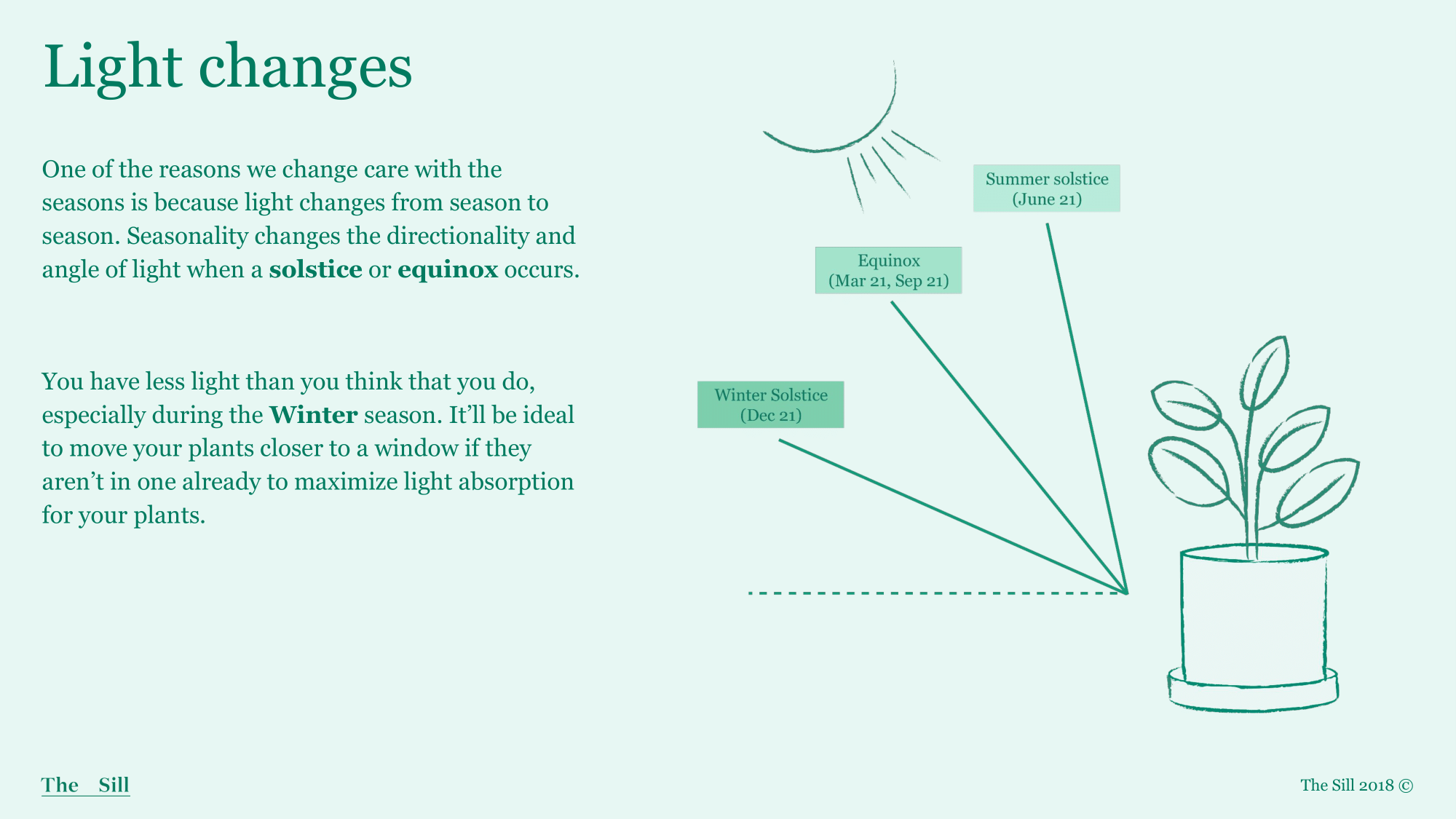 The importance of understanding these solstices or equinoxes is that they change the relative hours of day and night. When daylight hours change it can certainly impact our plants response to growth. The duration of light diminishes during the Winter months where we only get about 8–9 hours of daylight meaning that our plants will grow more slowly or go dormant. Whereas, during the growing season (after the Spring equinox & Summer Solstice) daylight hours are longer and more favorable for plant growth.