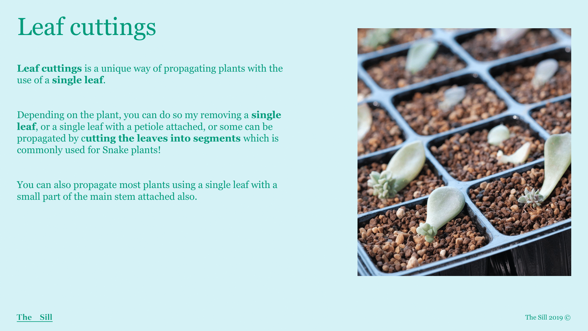 Examples of plants that can be propagated with just a leaf include most succulents like Echeveria, Hoyas, Sedum, Sempervivum, as well as Snake plants, ZZ plants, African violets, Begonia rex, Kalanchoe, etc.