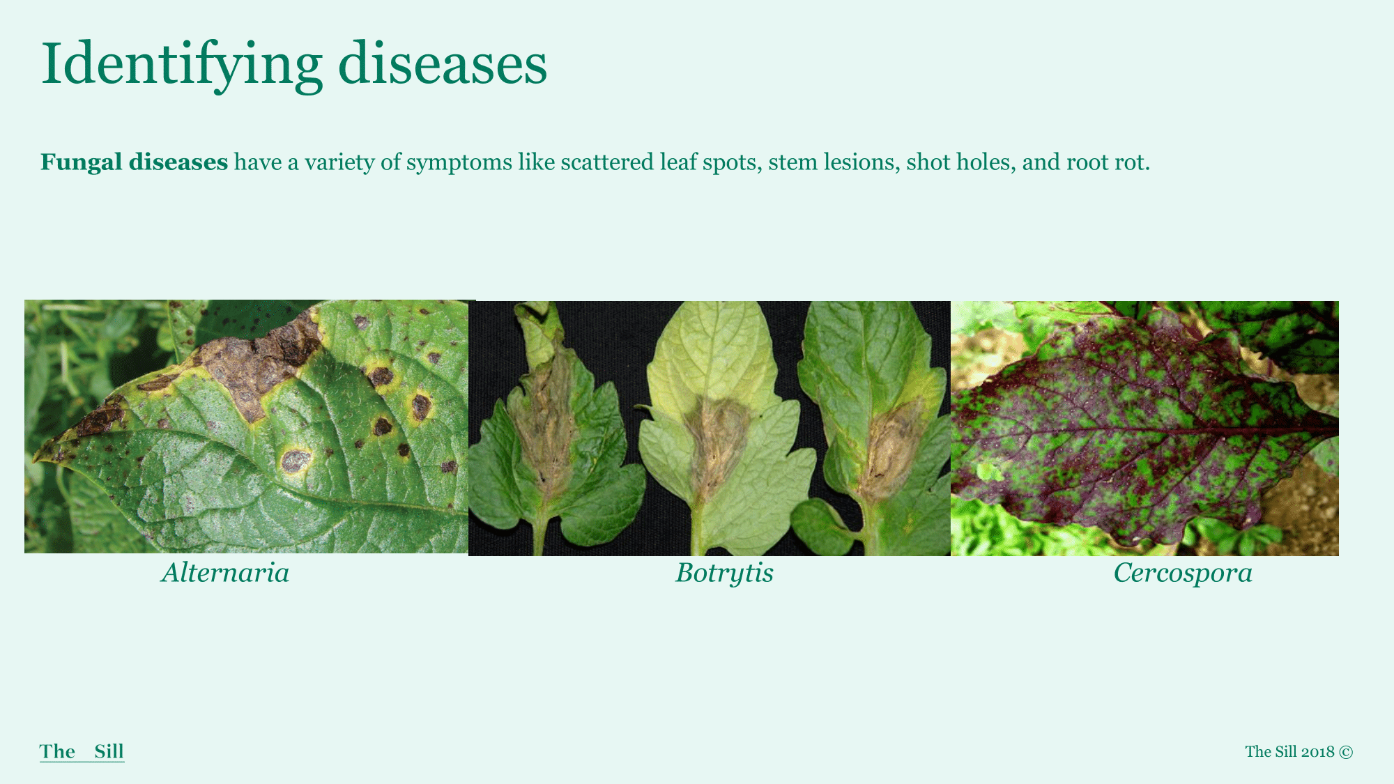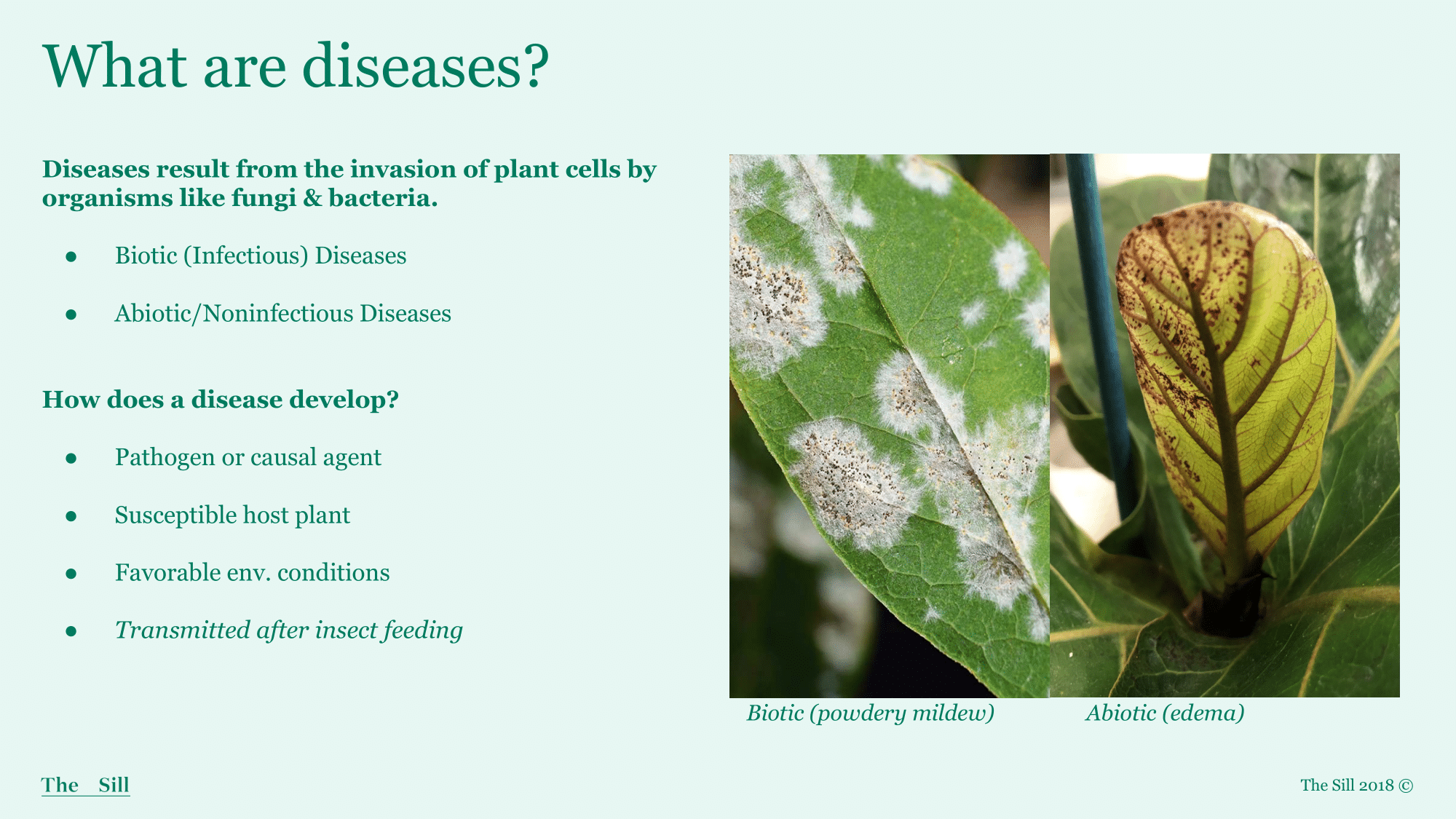 - Biotic - Can be diseased caused by fungi, bacteria or viruses. (example: powdery mildew, botrytis, etc).