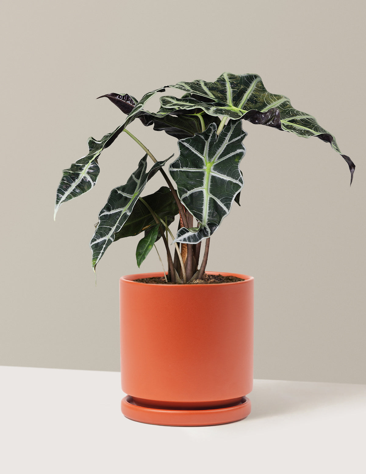 Make a statement with Alocasia Amazonica. Its striking, arrow-shaped leaves turn heads while thriving in bright light—ideal for lovers seeking a statement piece for sunny spots.
