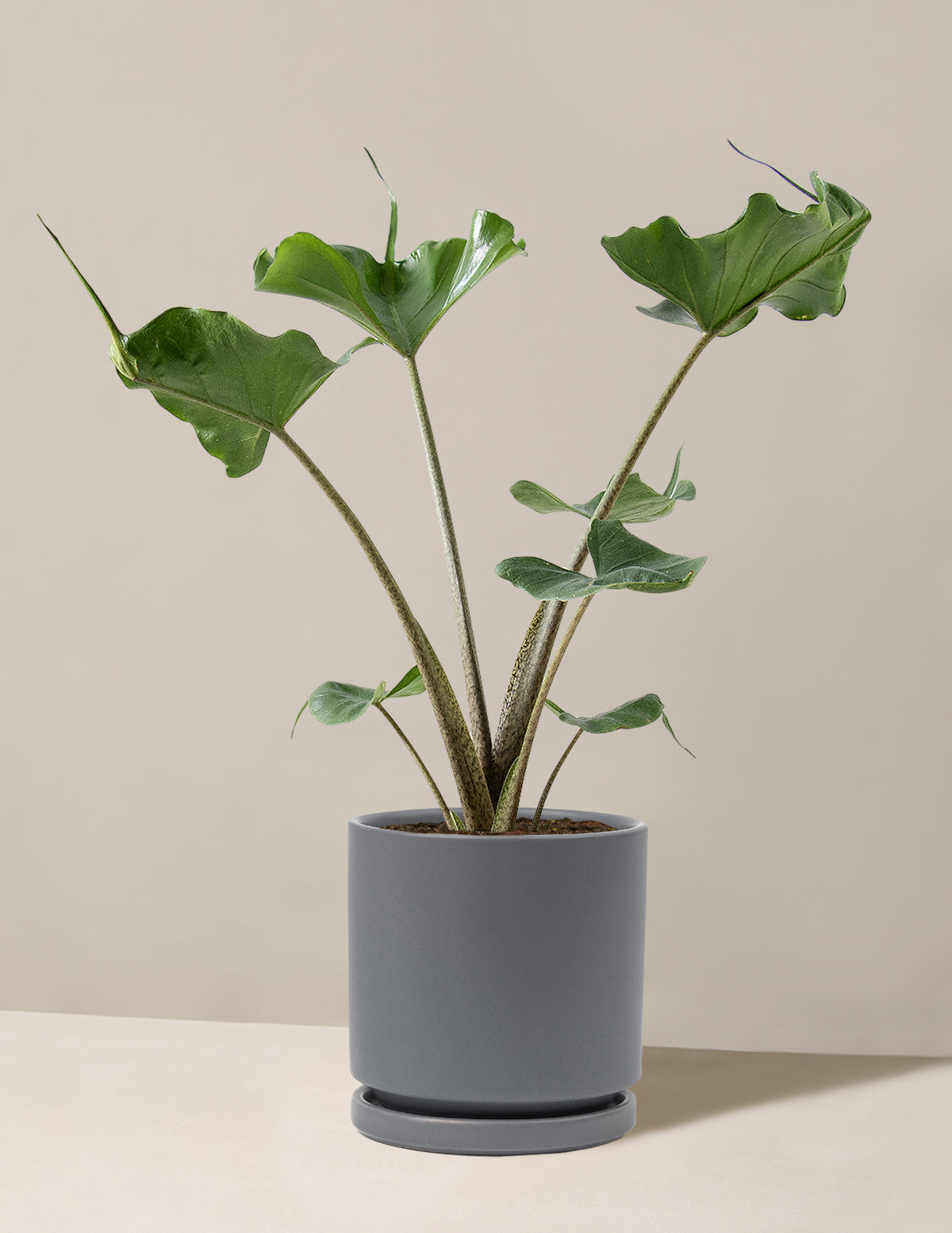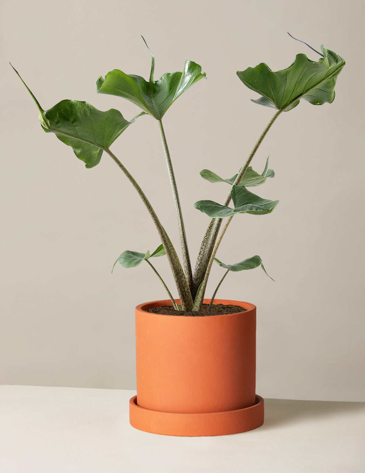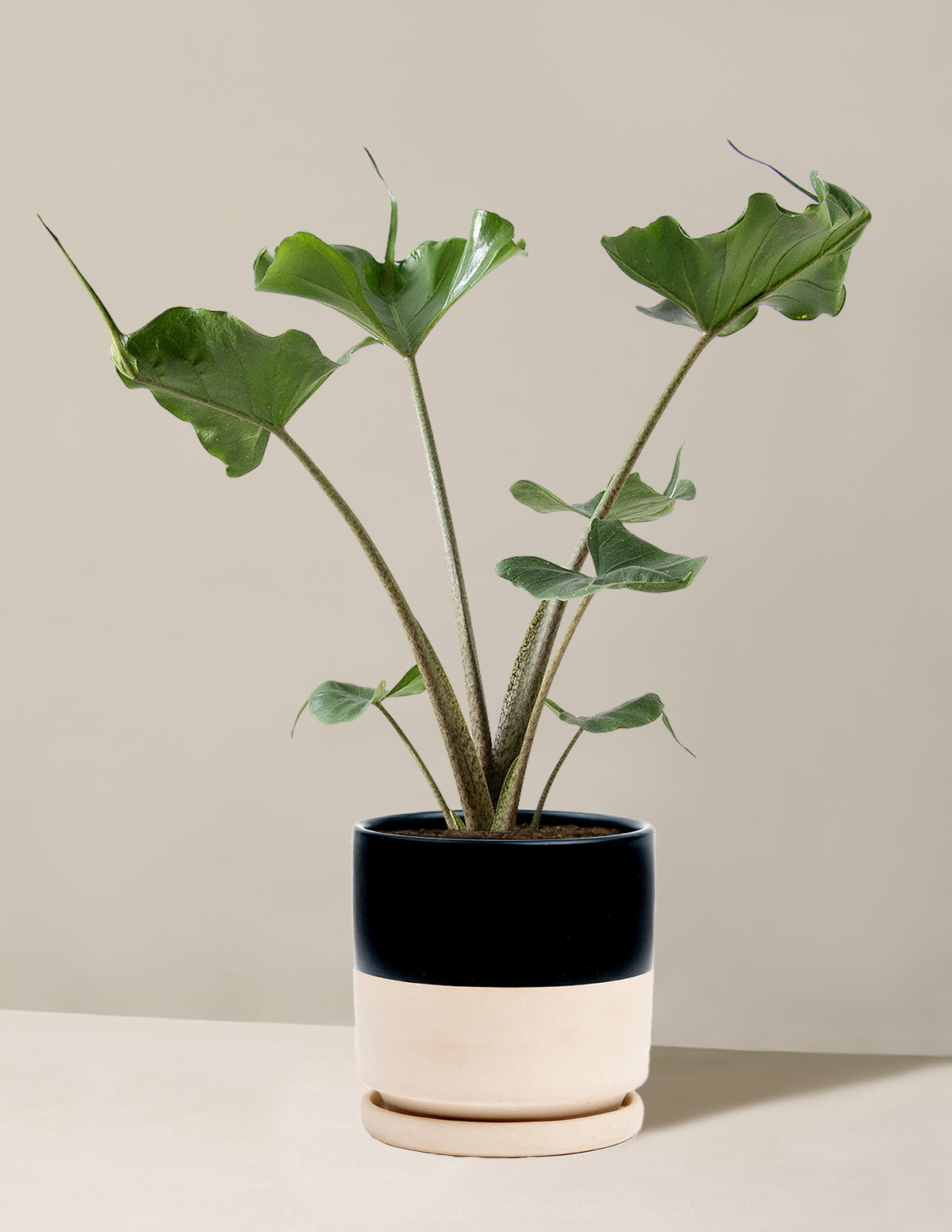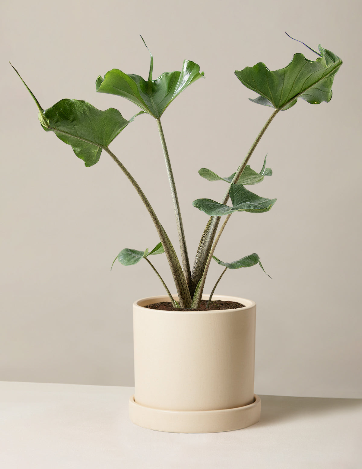 The Alocasia 'Stingray' gets its name from its uniquely shaped leaves that resemble the wings and tail of a stingray! Its vibrant green foliage with prominent veining and speckled stems is perfect for enthusiasts seeking a bold addition to their collection. Perfect for plant enthusiasts, this Alocasia thrives in bright, indirect light and enjoys high humidity.