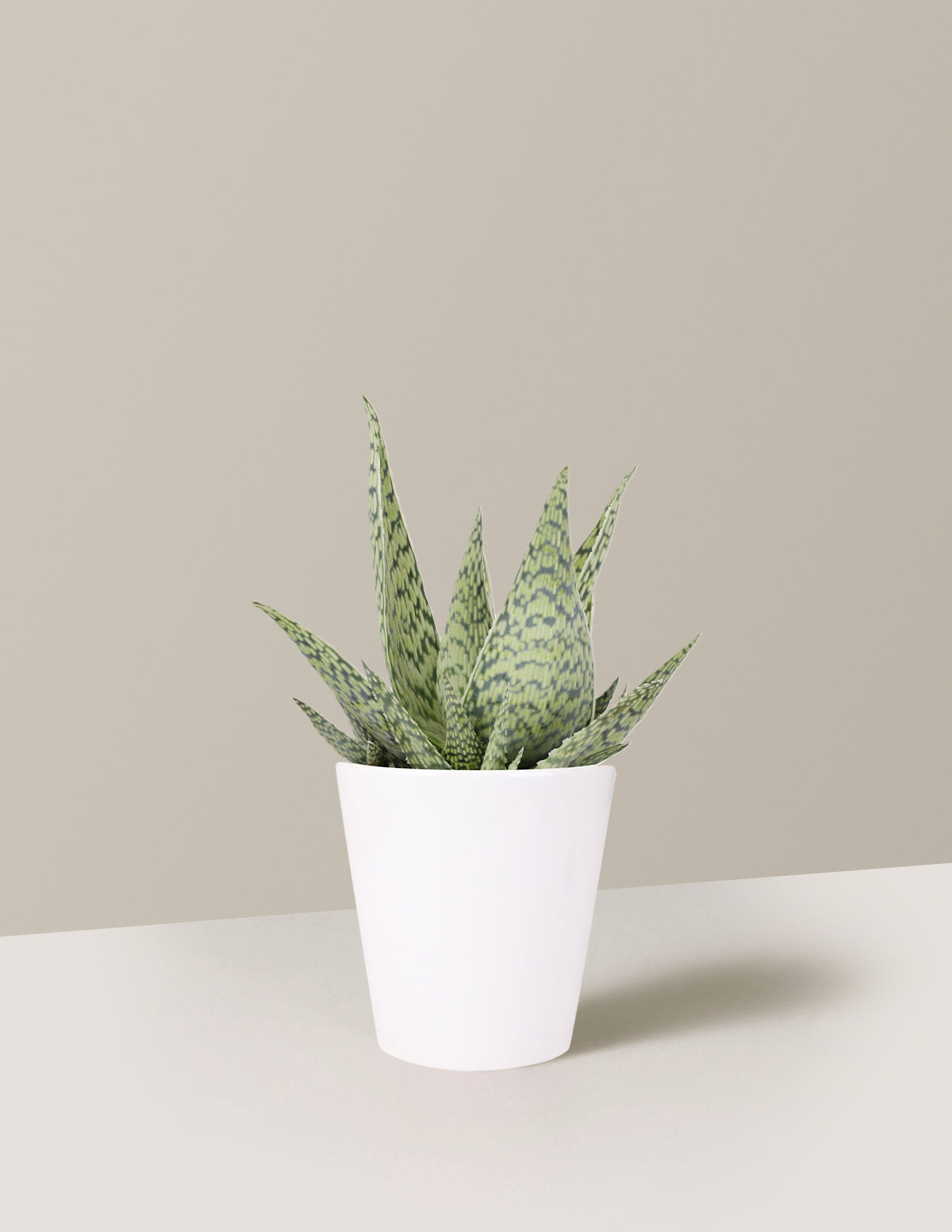 Meet the Aloe 'Delta Lights'— a compact Aloe hybrid with striking green leaves adorned with creamy, zigzag patterns. Low-maintenance but high in looks, this plant thrives on being the easiest part of your life—just provide direct sunlight and the occasional watering!