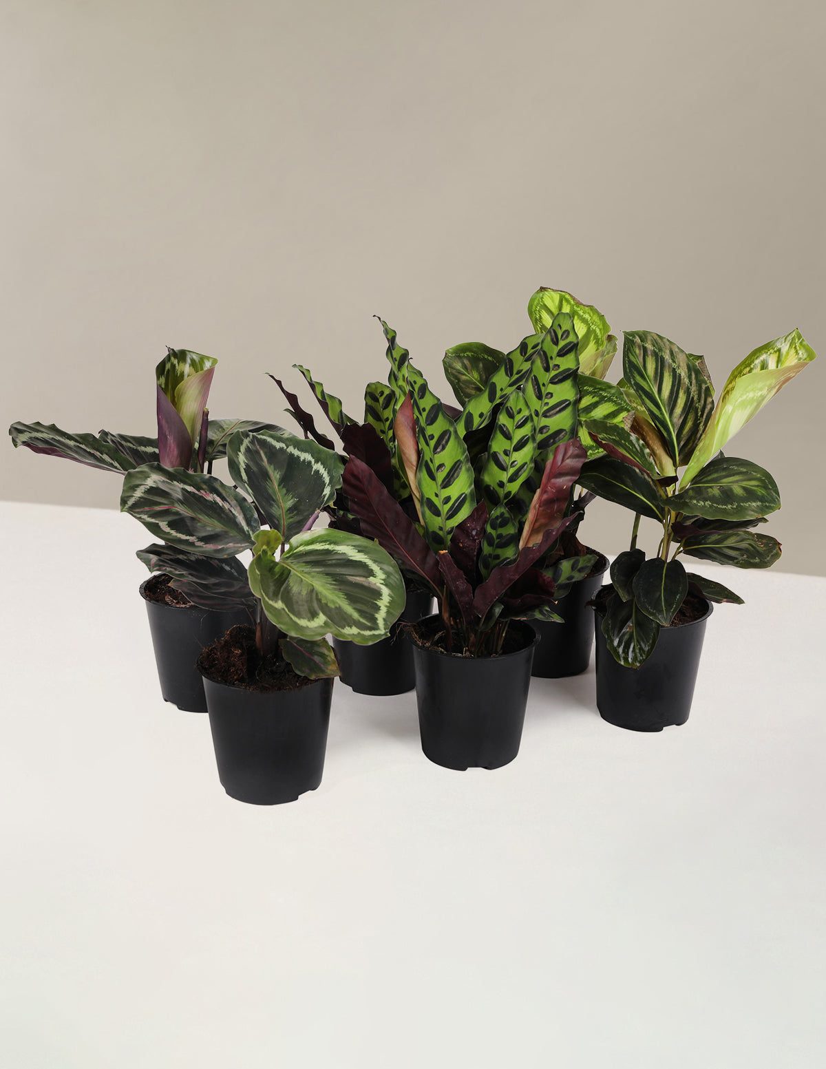 Add movement and pattern to your home with our pack of 6 Calatheas. Pet-friendly and full of personality, these unique plants are fun to grow and to gift. Kickstart your collection, or split with your plant bestie to grow your green thumbs together.