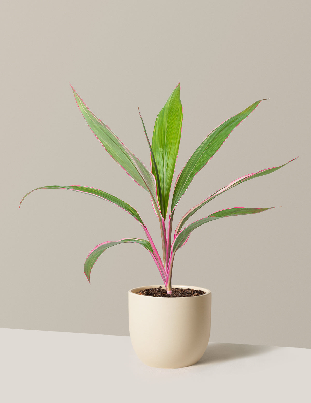 Cordyline 'Pink Diamond' is a tropical plant with striking, sword-shaped leaves that feature a mix of deep green and creamy white hues with vibrant pink stems. Its colorful foliage creates an eye-catching contrast, making it a perfect statement plant for any indoor or outdoor space.