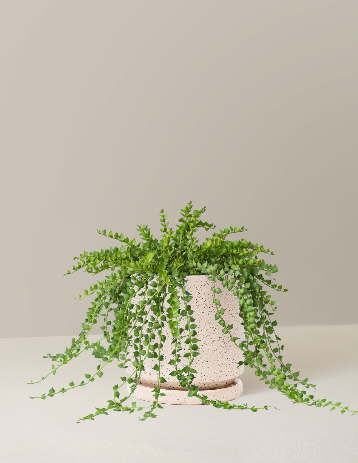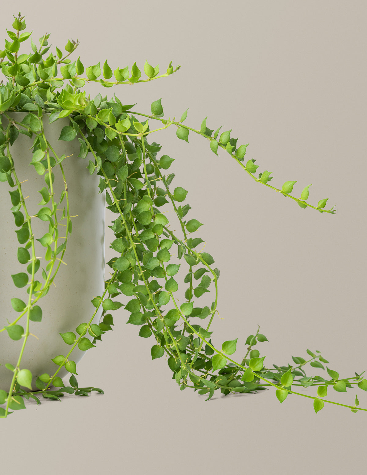 This Dischidia Plant grows cascading vines of plump, waxy leaves that thrive with little care—perfect for hanging planters or bright shelves.