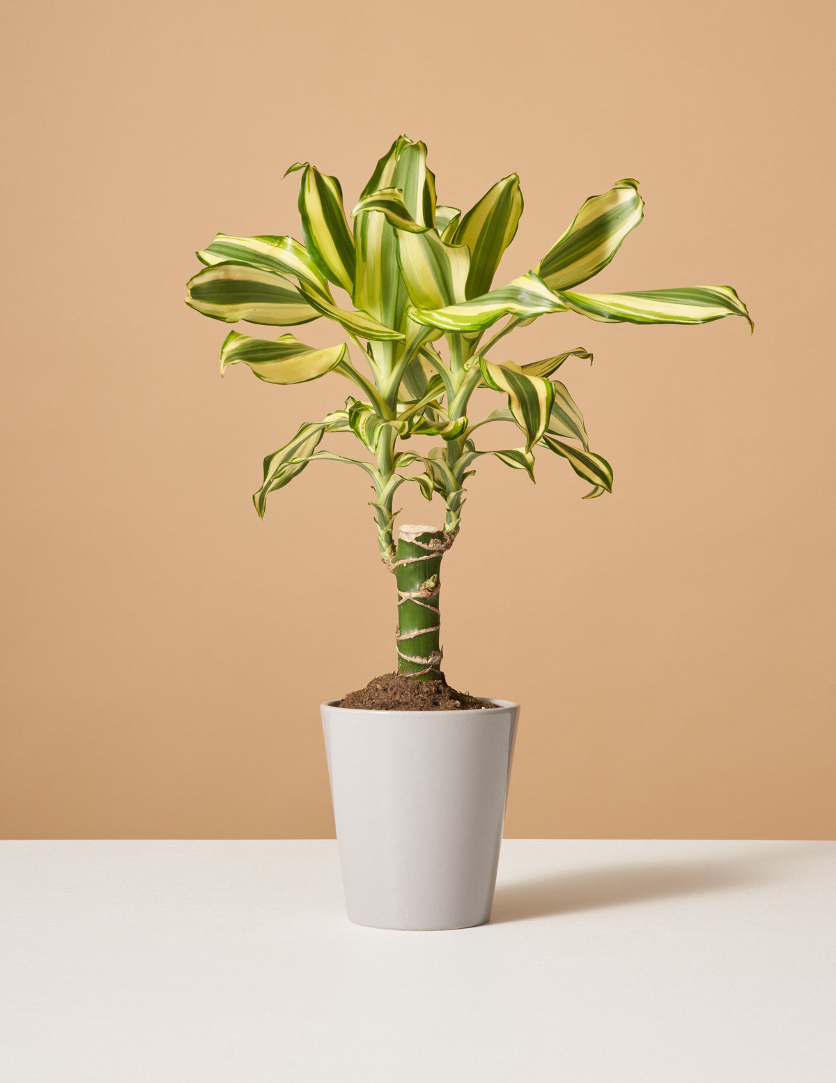 A member of the popular, low-maintenance Dracaena plant family, the Dracaena Fragrans ‘Sol’ has long, slender leaves adorned with green and yellow striations. This versatile plant will thrive best in bright light which helps it retain its color but it can tolerate lower light conditions.