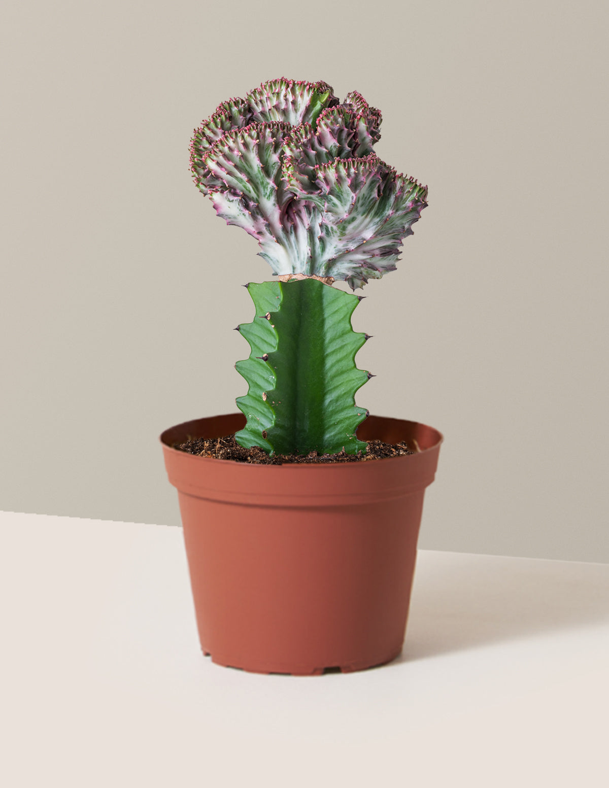 The Euphorbia Lactea Crested 'Mermaid Tail', also referred to as 'Coral Cactus', is a uniquely shaped succulent prized for its intricate, crested growth pattern that mimics the elegant tail of a mermaid. This rare cultivar thrives in bright light and is perfect for those seeking a distinctive, conversation-starting piece to their rare plant or cactus collection. Choose from vibrant green or mystical purple!