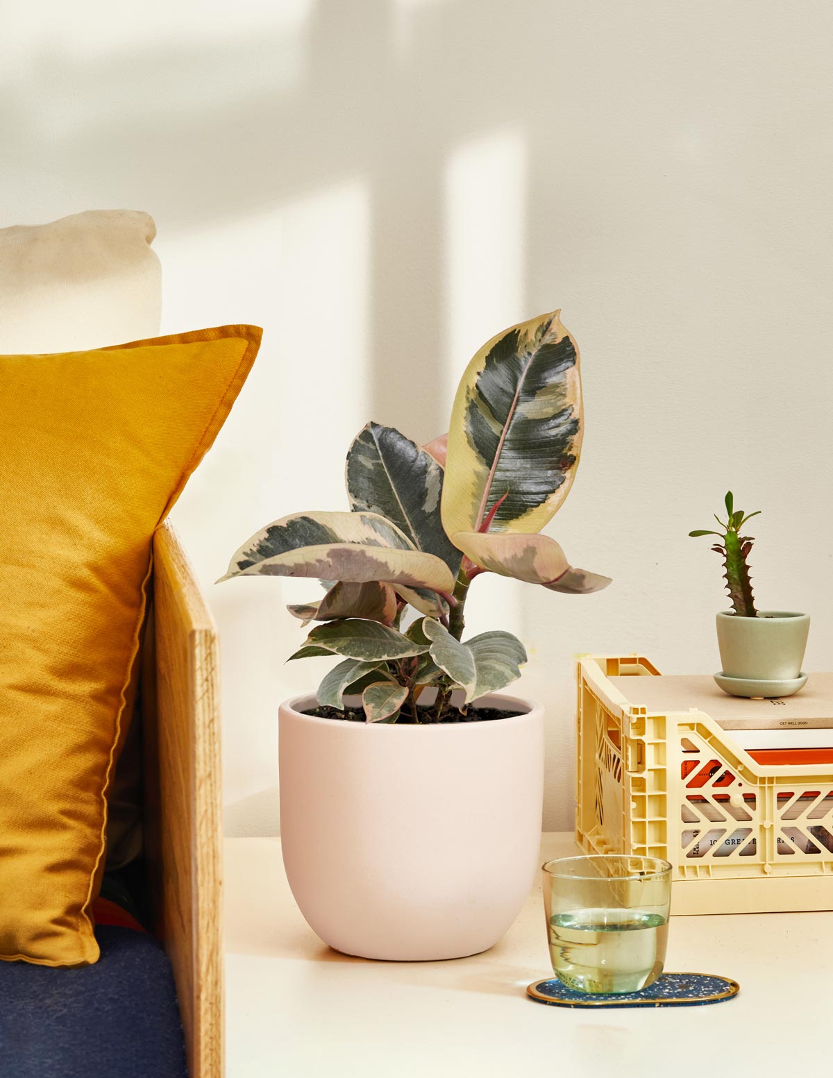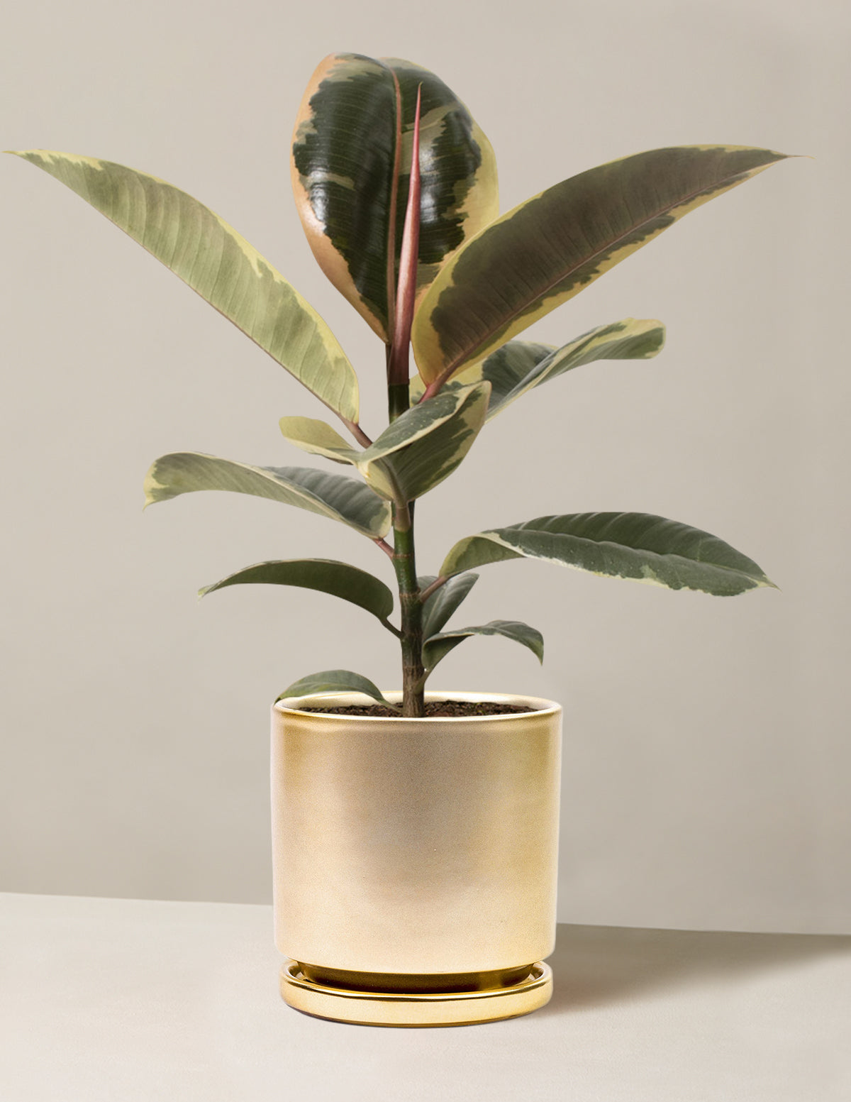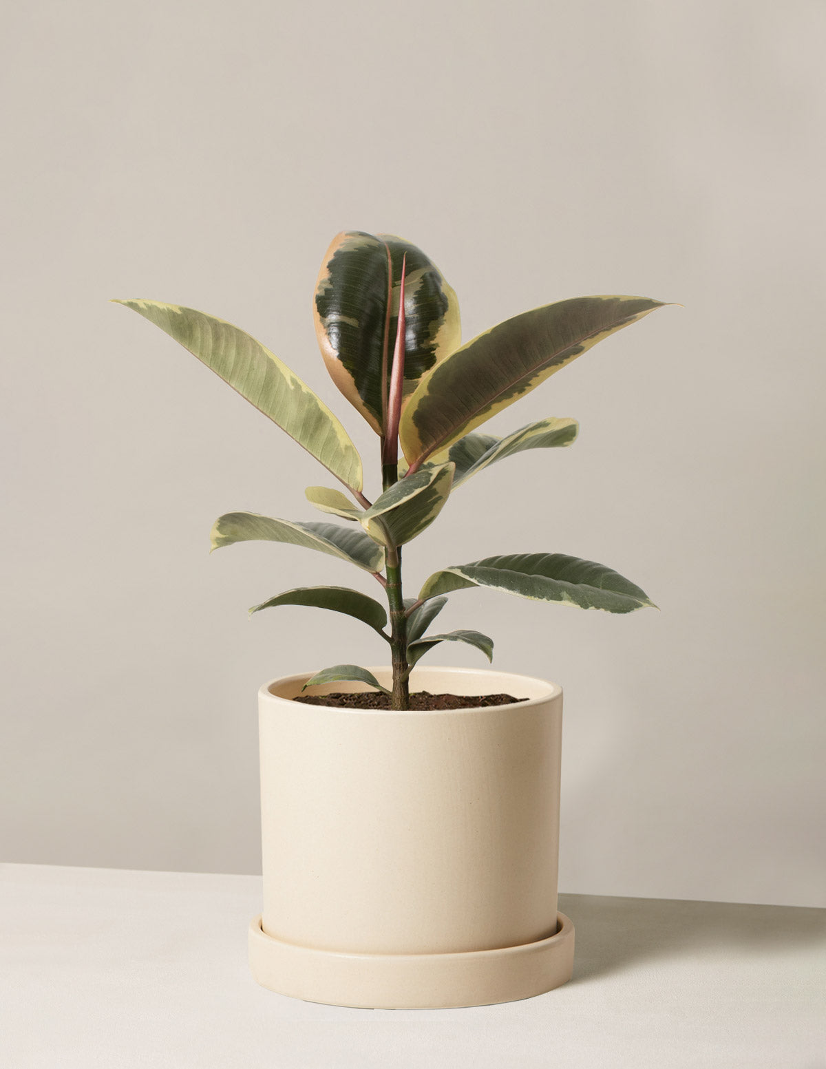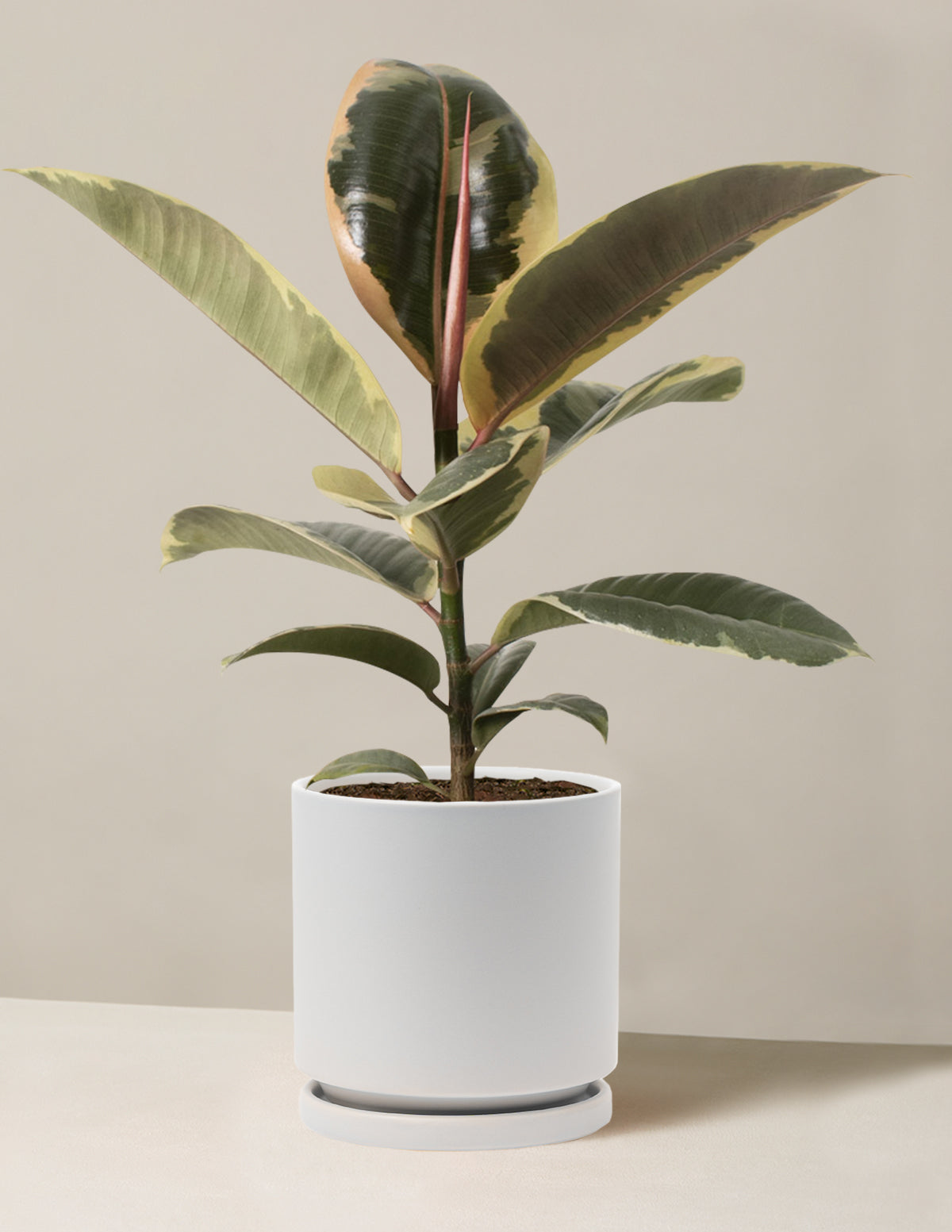 The Ficus elastica ’Tineke’ – or variegated rubber tree – is a popular variety of ficus known for its beautiful pink, green, and yellow leaves. The Tineke’s striking variegation and easy-going nature make it the perfect new plant to add to your sill this year.