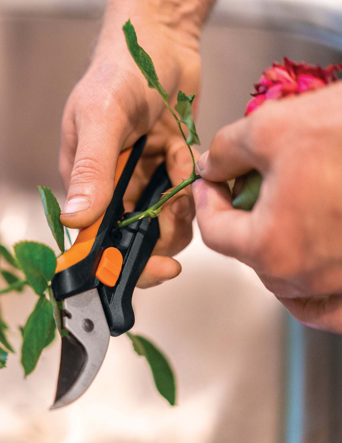 The Floral Pruner is ideal for working with cut flowers and handling light pruning tasks essential to encourage healthy growth. They even include a stem stripper for removing leaves or thorns, as well as a built-in wire cutter—perfect for the DIY flower arranger. An easy-open lock protects the blade and allows for safe storing when not in use.