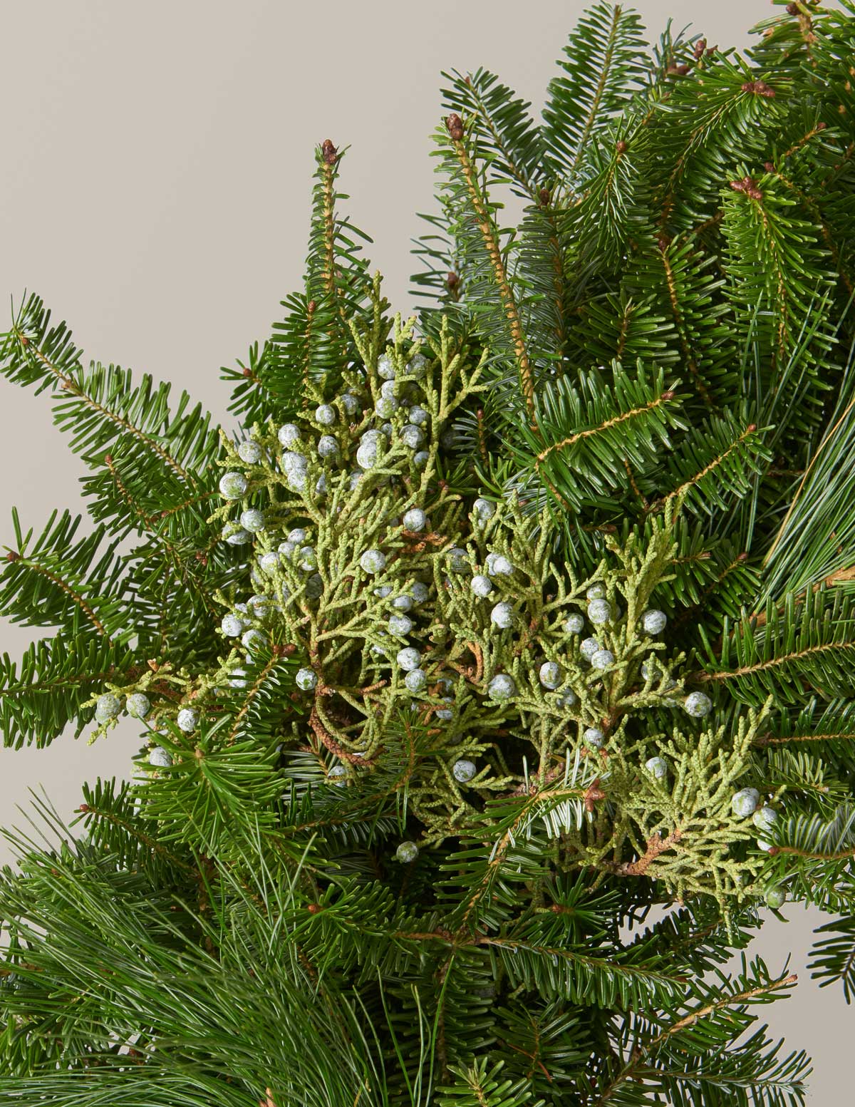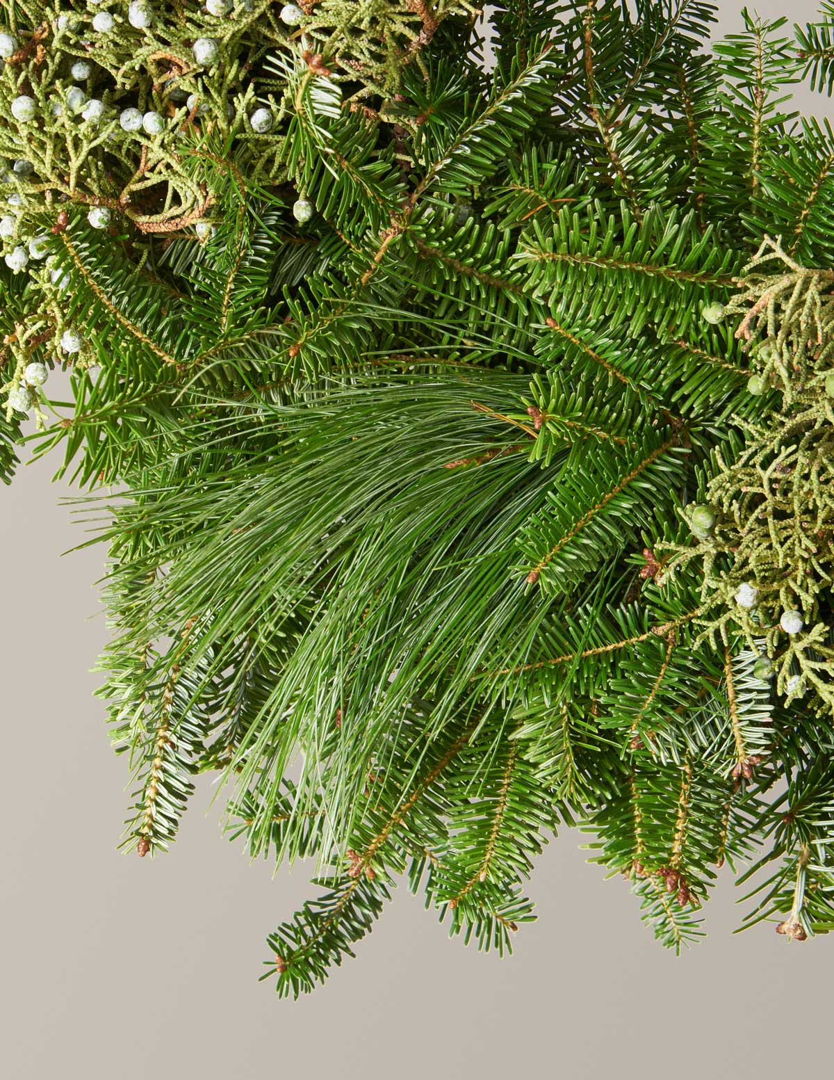 - Wreath is handcrafted from Fraser Fir, White Pine, Juniper