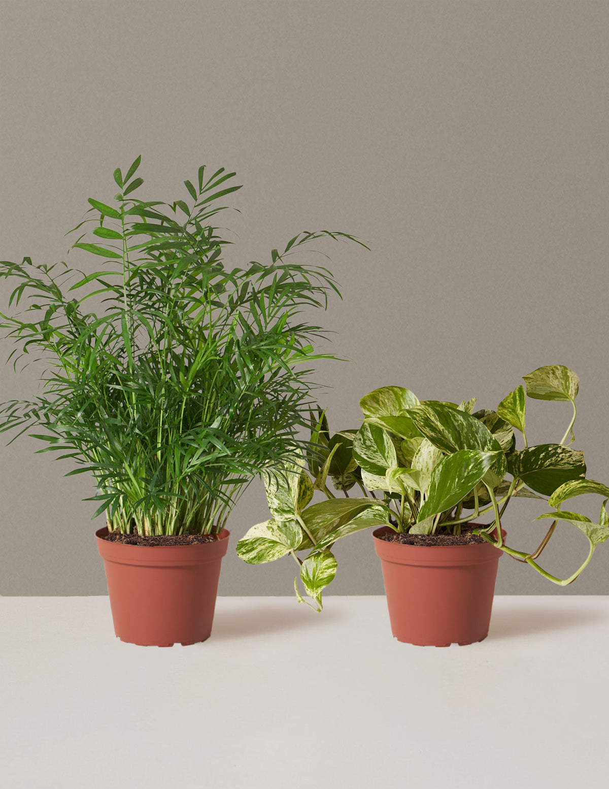 Bring the green to their new beginning with the Housewarming Duo—featuring two easygoing favorites: the elegant Parlor Palm and the vining Marble Queen Pothos. Together, they add warmth and welcome to any space, from sunlit shelves to cozy corners. Both are beginner-friendly, air-purifying, and adaptable—making them the perfect gift for new homes, fresh starts, or just because.