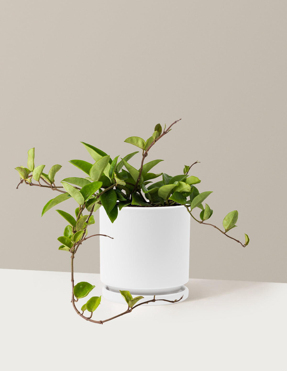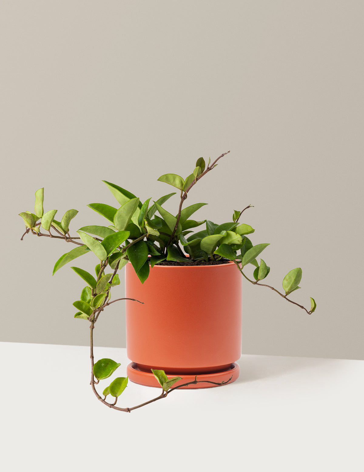 A resilient trailing Hoya with glossy green leaves and delicate starry flowers—perfect for brightening shelves, hanging planters, or gifting to a fellow plant lover.