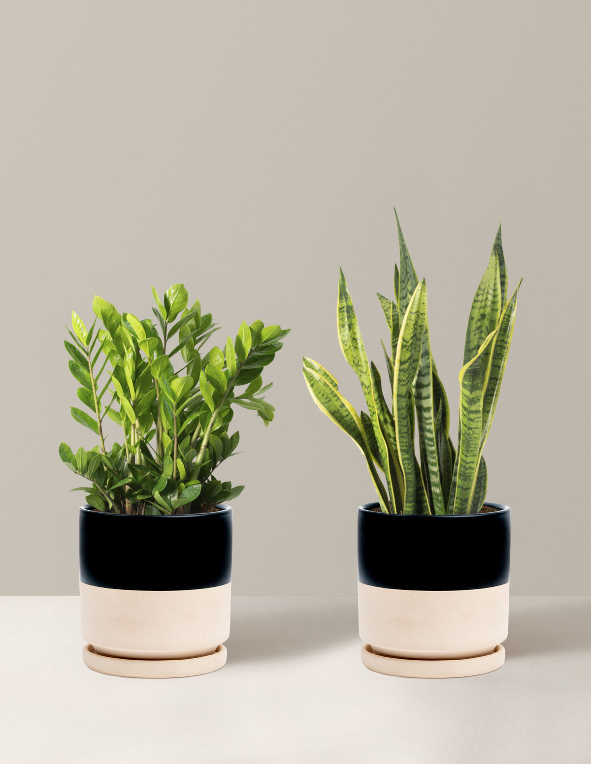 Enjoy two of our favorite low-light tolerant plants: the Snake plant and the ZZ plant, both of which are very resilient and drought-tolerant. These versatile plants are adaptable to a variety of light conditions and are perfect for anyone looking for low-maintenance options (they're great for offices, too!).