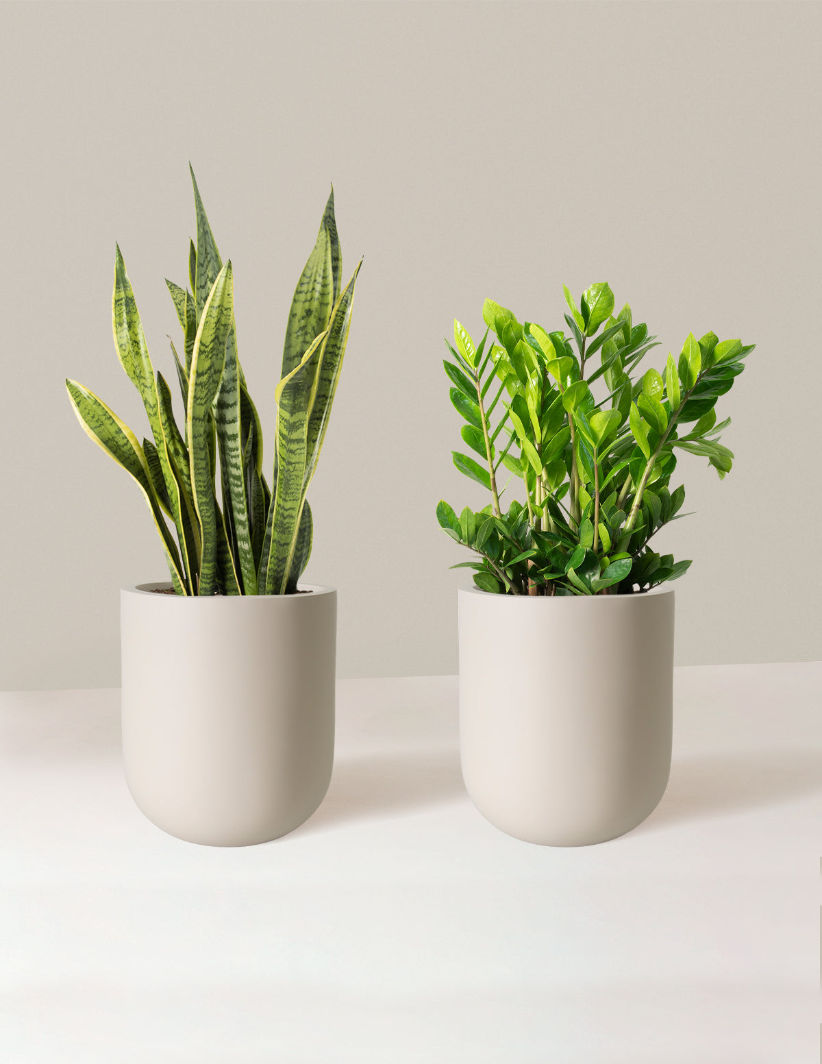 Enjoy two of our favorite low-light tolerant plants: the Snake plant and the ZZ plant, both of which are very resilient and drought-tolerant. These versatile plants are adaptable to a variety of light conditions and are perfect for anyone looking for low-maintenance options (they're great for offices, too!).
