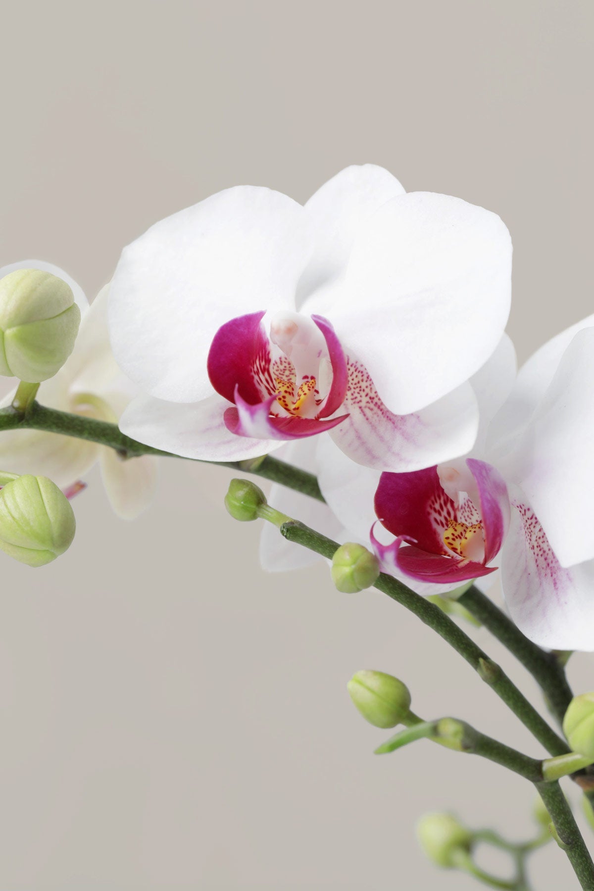 Affectionately nicknamed the beginner orchid, the popular Phalaenopsis orchid is one of the easiest varieties of orchids to grow as a houseplant. This orchid will typically bloom once a year for up to three months. Upon delivery, you may notice a small number of blooms on your orchid—these blooms will open quicker in a warm, indoor setting. After a blooming cycle, the flowers will wilt and fall off and the orchid will store up energy to re-bloom again next season.
