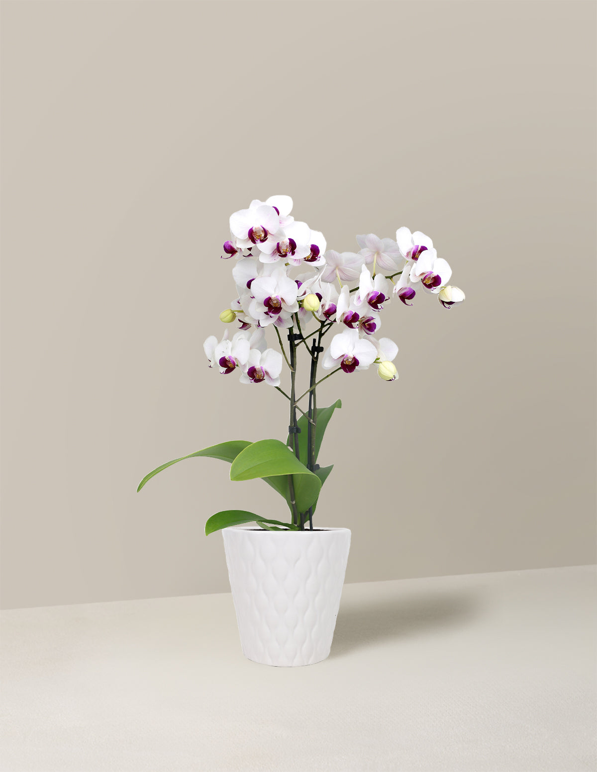 Affectionately nicknamed the beginner orchid, the popular Phalaenopsis orchid is one of the easiest varieties of orchids to grow as a houseplant. This orchid will typically bloom once a year for up to three months. Upon delivery, you may notice a small number of blooms on your orchid—these blooms will open quicker in a warm, indoor setting. After a blooming cycle, the flowers will wilt and fall off and the orchid will store up energy to re-bloom again next season.