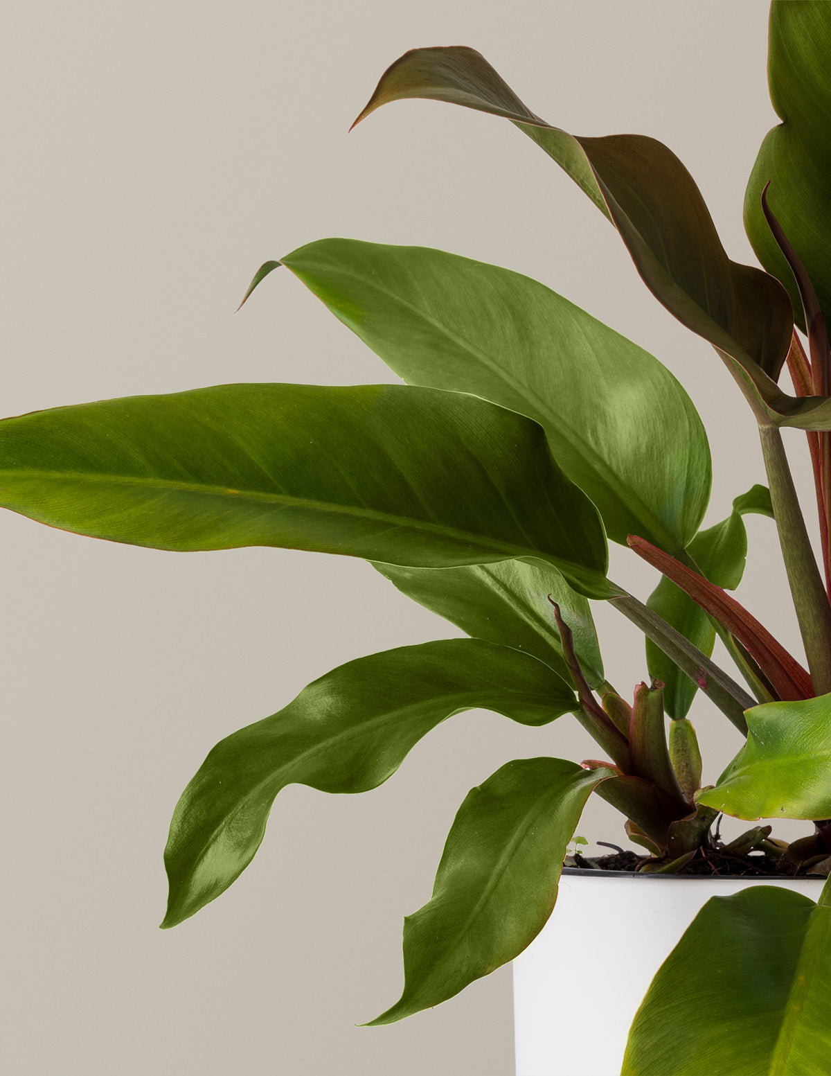 The Philodendron 'Autumn' is basically fall in plant form—minus the raking! New leaves emerge in coppery-red or bronze tones, gradually fading to deep green. It loves bright, indirect light and adds a cozy, autumnal feel to your space, like having fall foliage indoors all year long! If pumpkin spice had a plant cousin, this would be it.