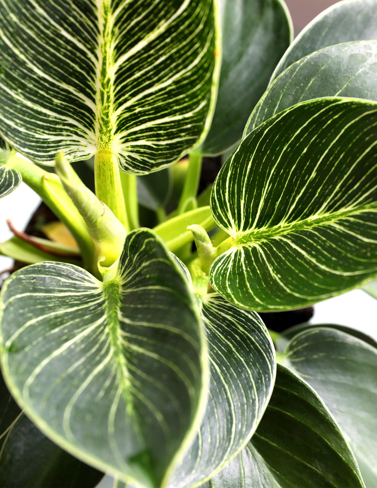 The Philodendron Birkin is characterized by its lush green leaves with white or yellow pinstripes. A unique hybrid, you won't find this plant in the wild. It is a slow growing plant that can reach up to 3 feet tall indoors if well cared for.