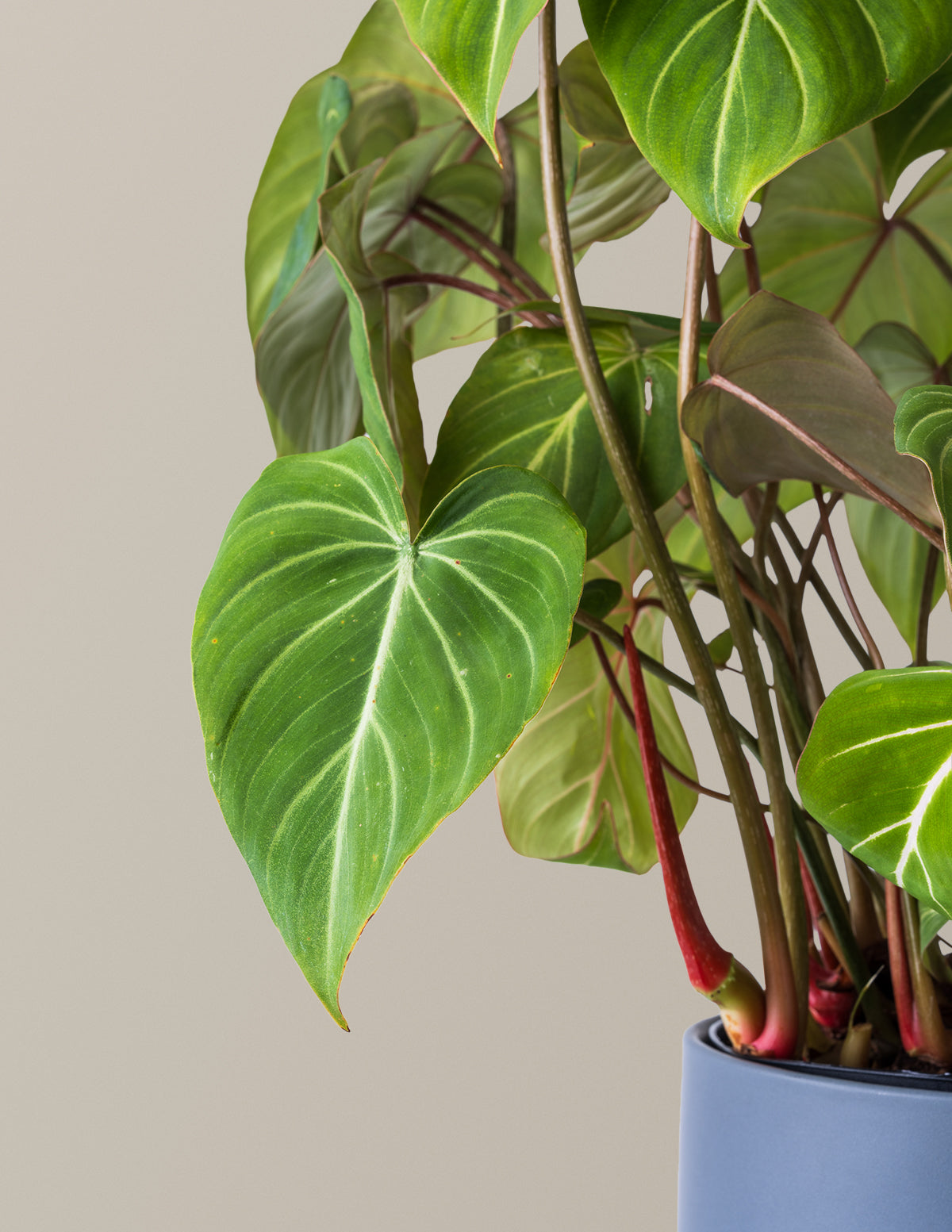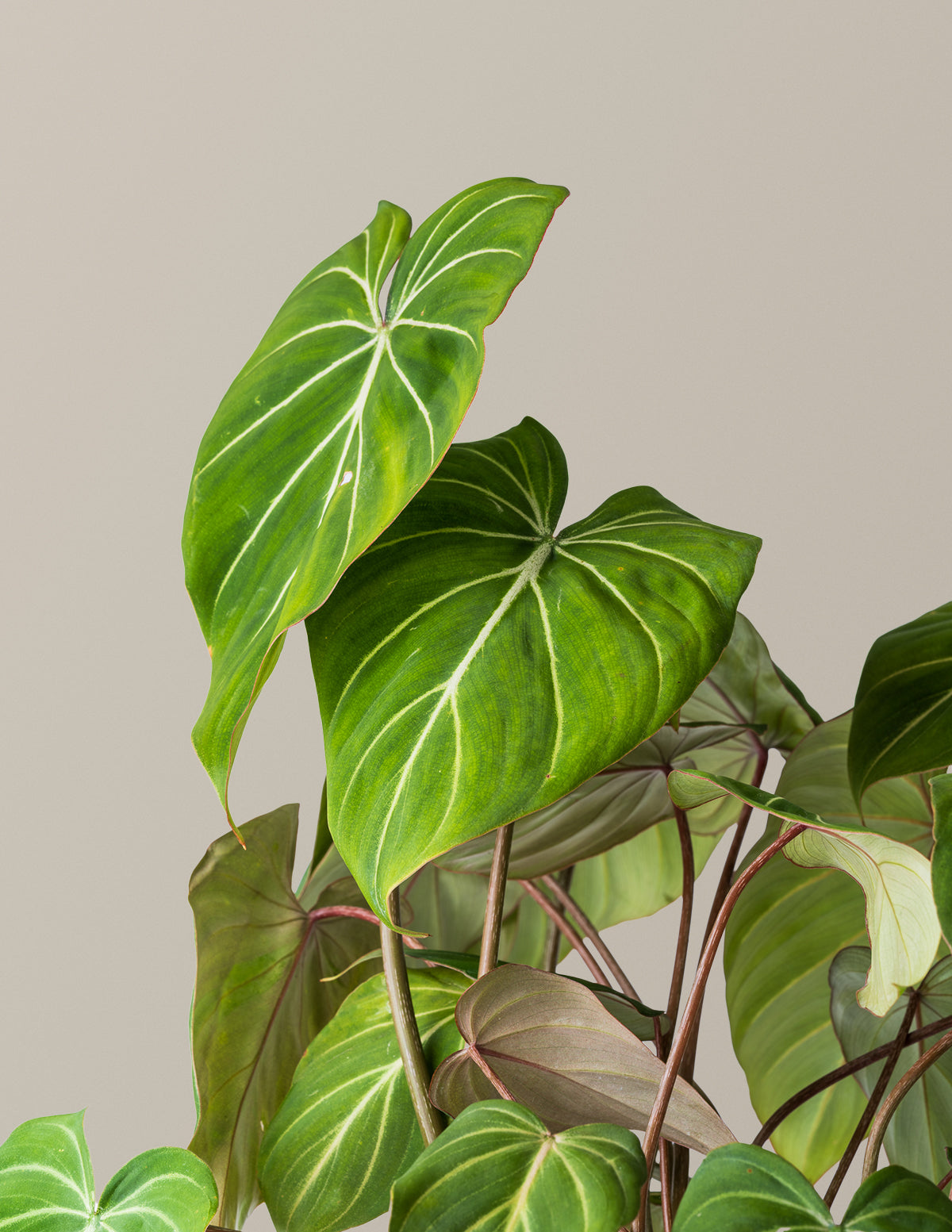 The Philodendron gloriosum is a tropical plant prized for its glorious (hehe, get it?), heart-shaped leaves with prominent white veins. This plant is a slow grower, but the payoff is worth it! Its leaves get progressively larger as the plant matures, eventually reaching about 2' to 3' in length, making it a statement piece for any plant enthusiast. (Yes, three feet! Leaves as long as a yardstick!)