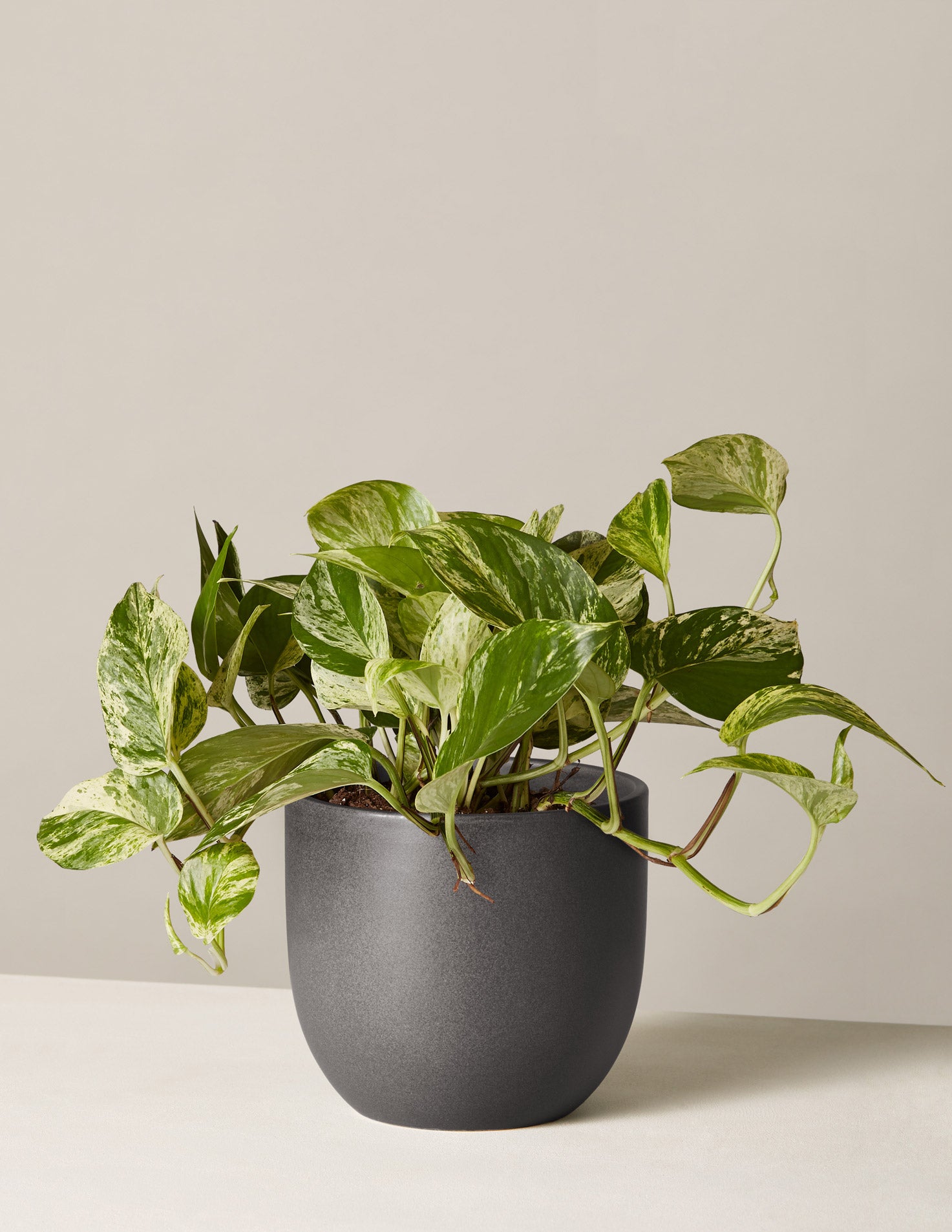 Pothos plants are one of the most popular types of houseplants, and for good reason: they're fast-growing, hearty, and easy to care for. This variety is referred to as 'Marble Queen' thanks to the swirls of deep greens and white on the plant's signature heart-shaped leaves. Its quick-growing vines will make any space feel more lush; a great, low maintenance choice for beginners.