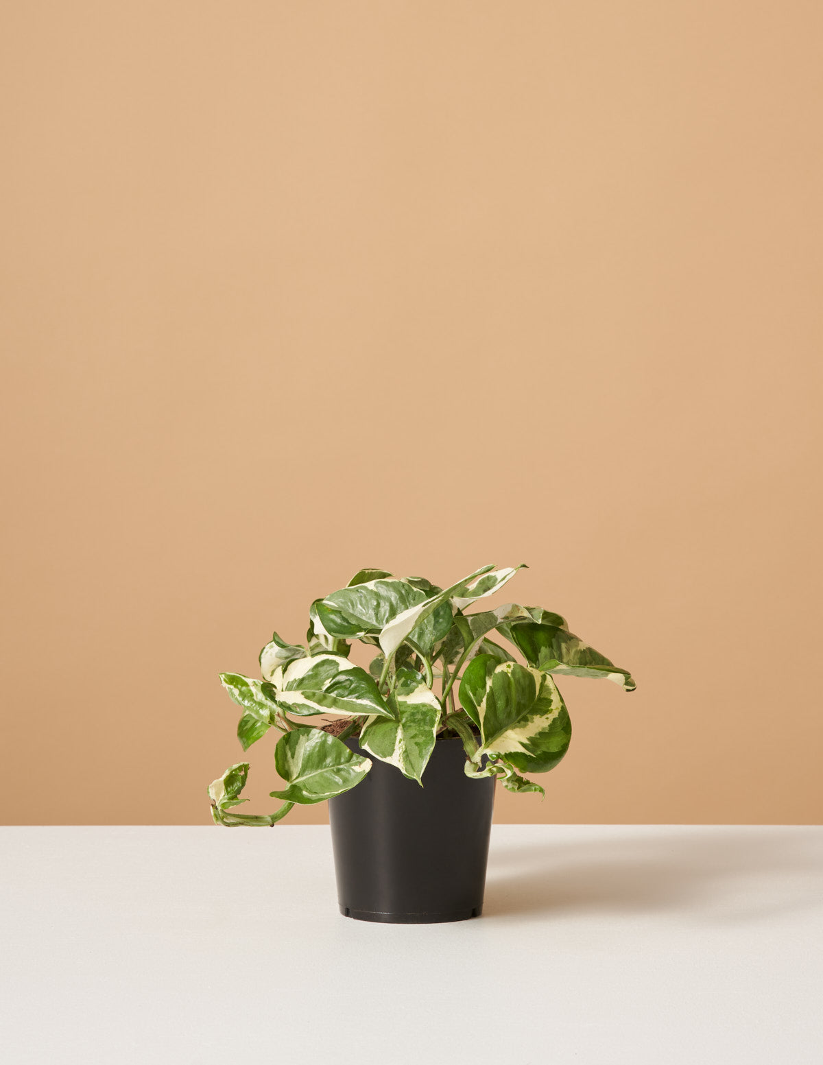 Pothos Njoy, scientifically known as Epipremnum aureum 'n'joy' is a trailing houseplant with striking variegated foliage. This low-maintenance plant is easy to care for like other Pothos but requires brighter light to sustain its creamy variegation.