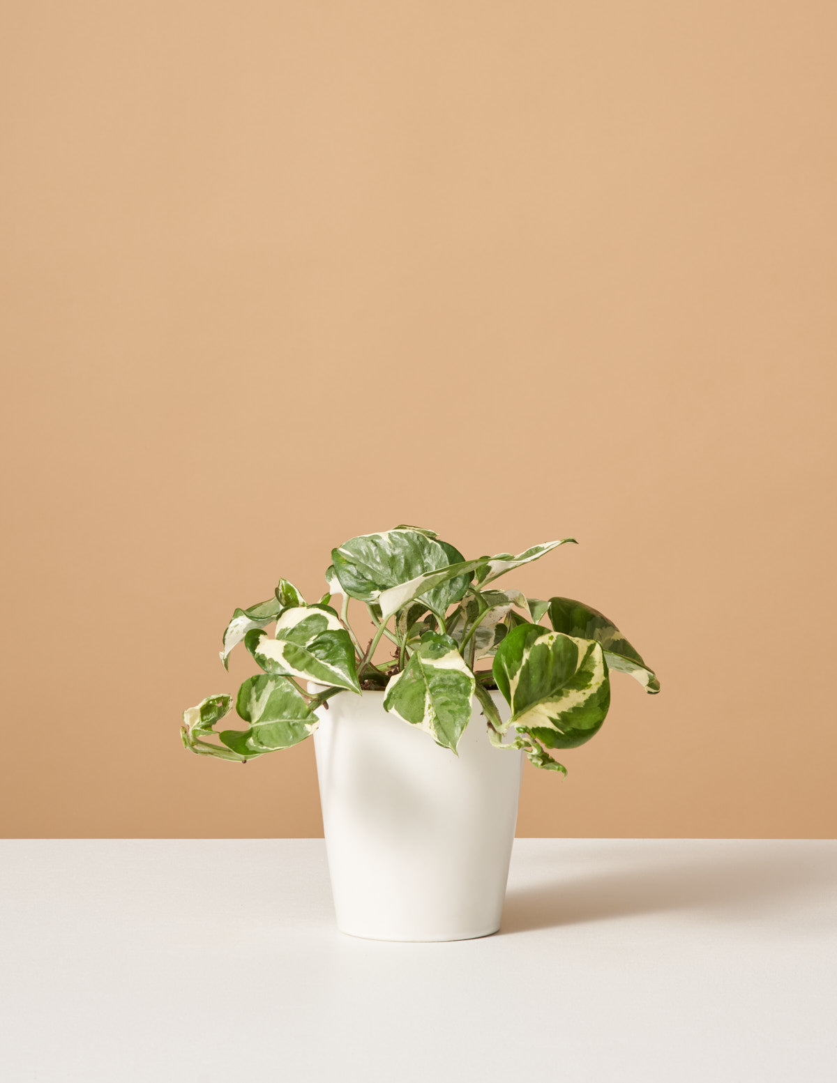 Pothos Njoy, scientifically known as Epipremnum aureum 'n'joy' is a trailing houseplant with striking variegated foliage. This low-maintenance plant is easy to care for like other Pothos but requires brighter light to sustain its creamy variegation.