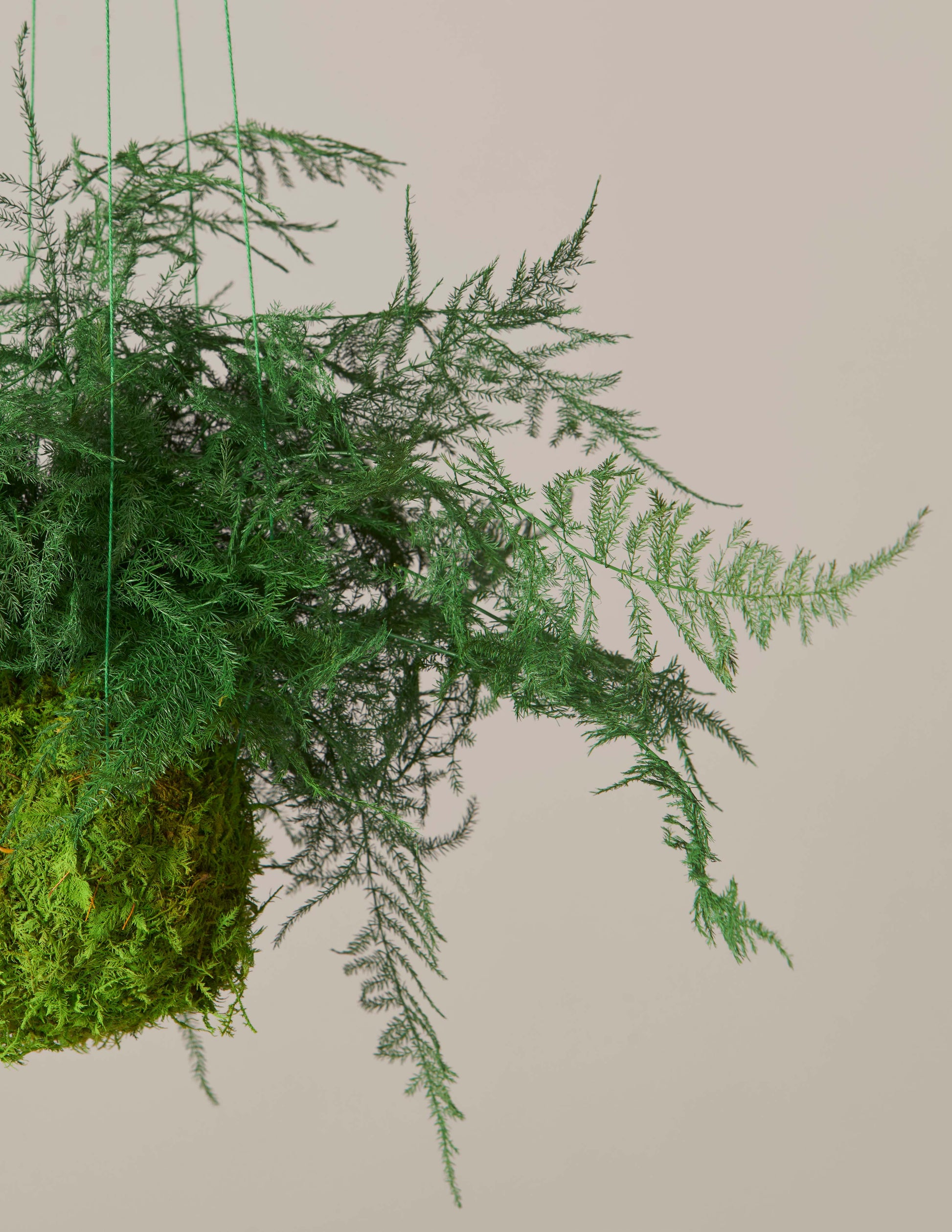 With a preserved fern nestled in a hand-crafted moss ball, this kokedama brings effortless greenery and Japanese-inspired style to your space—no care required.