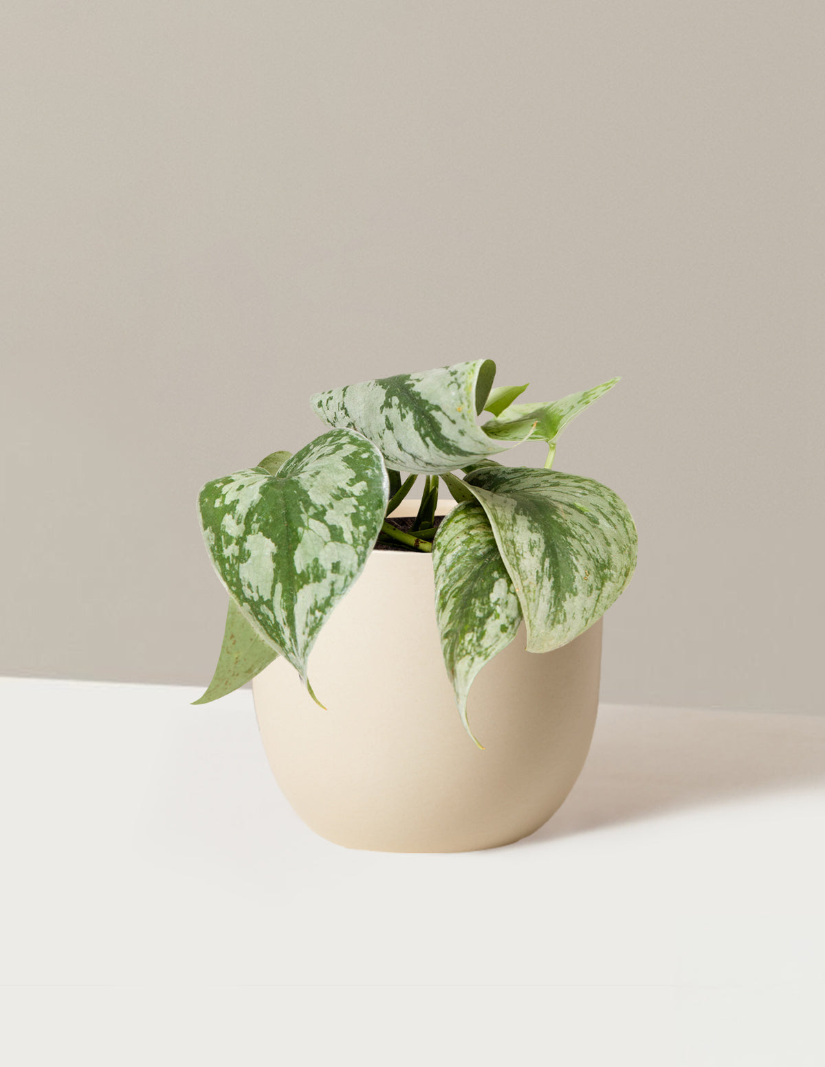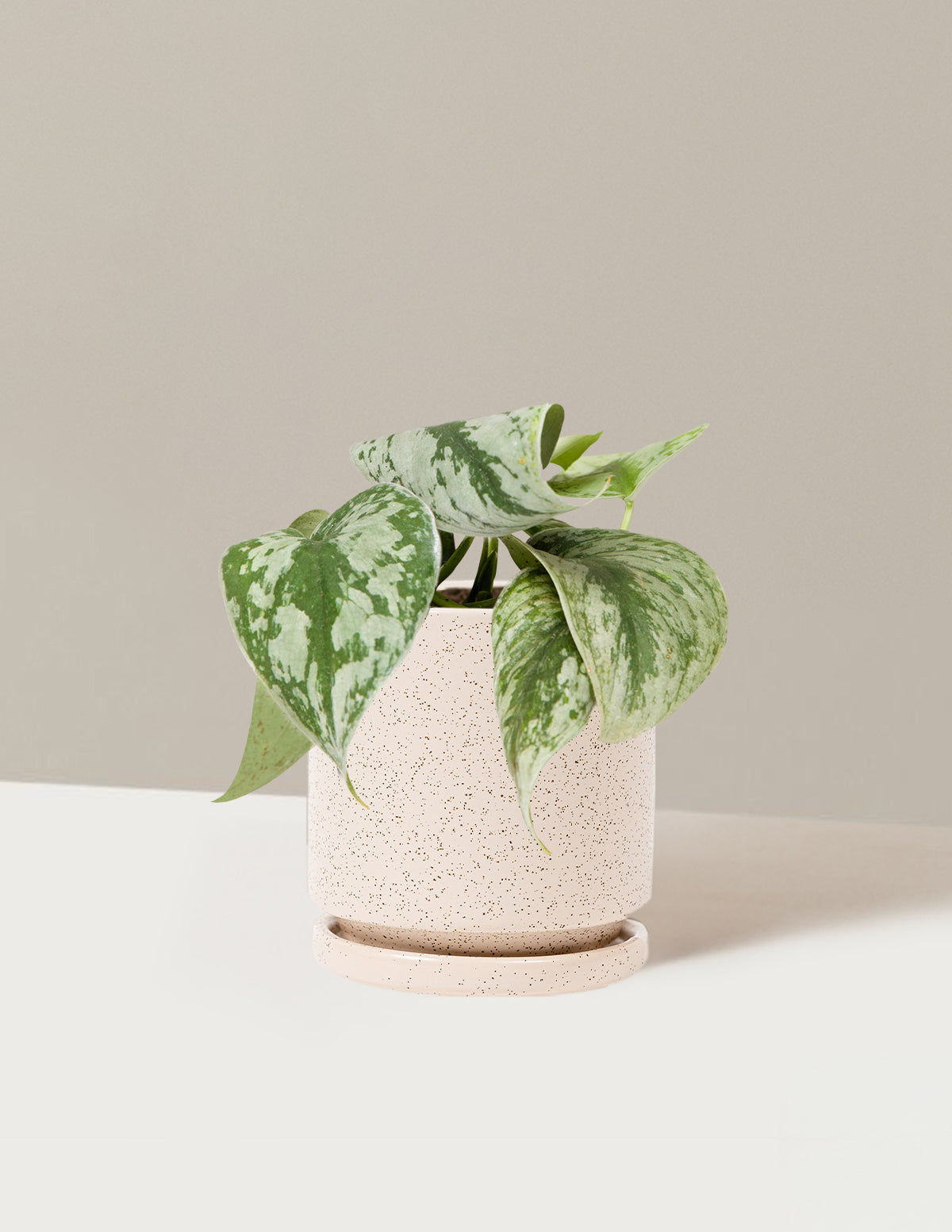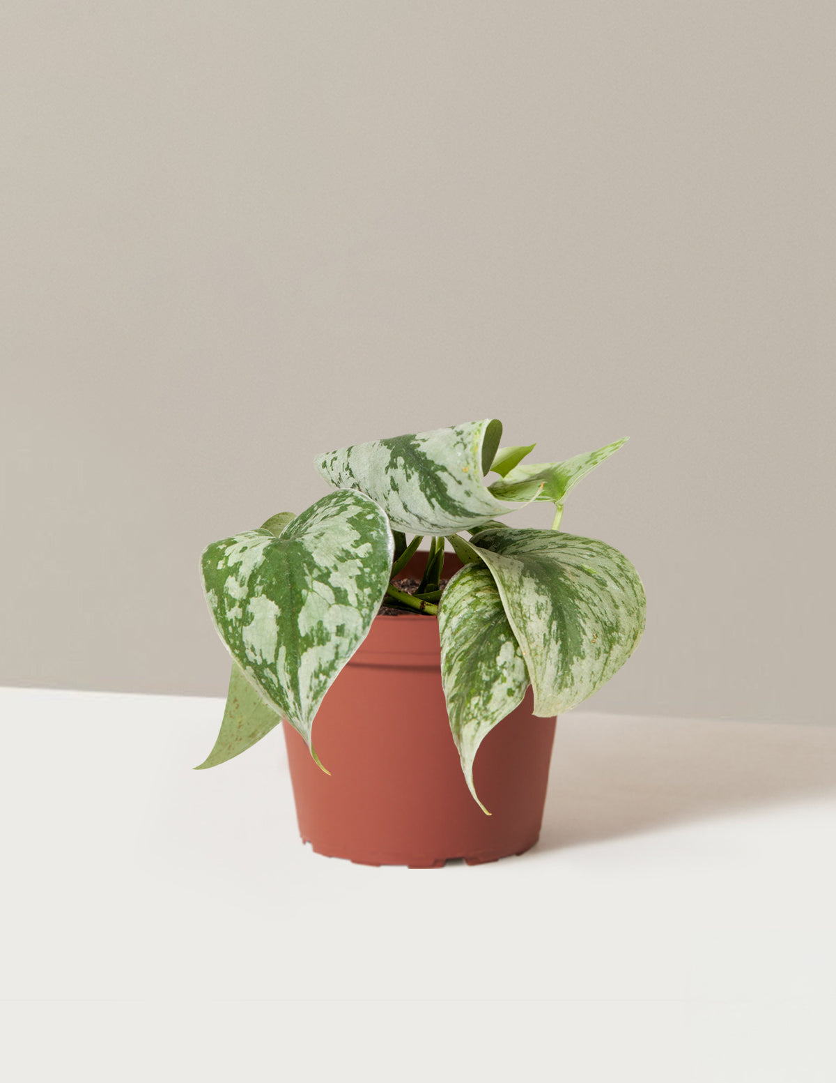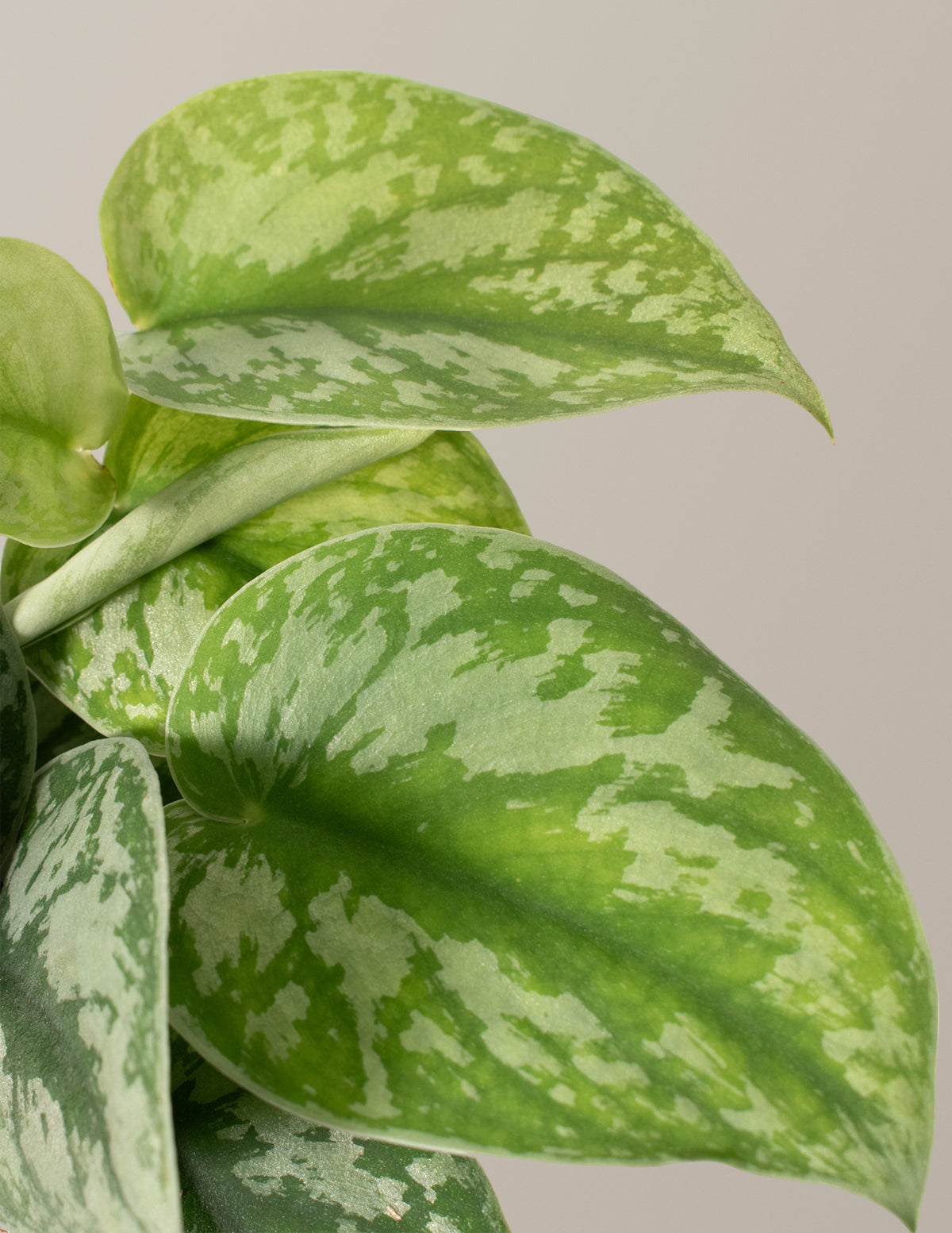 With soft green leaves speckled in silver, the Satin Pothos grows quickly and easily indoors, brightening shelves, hanging planters, or desktops with trailing vines.