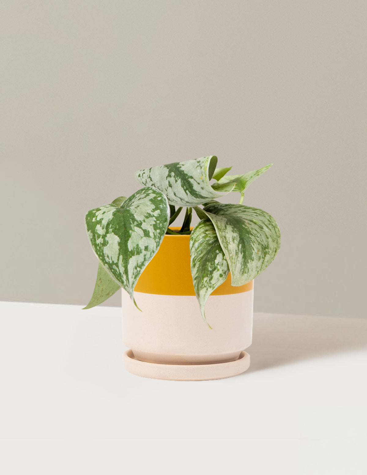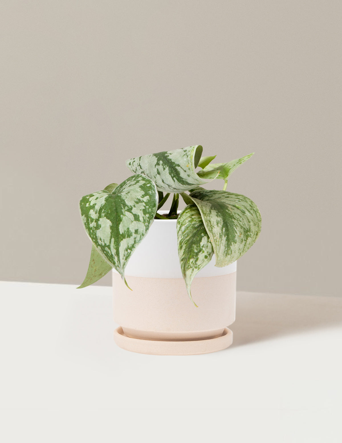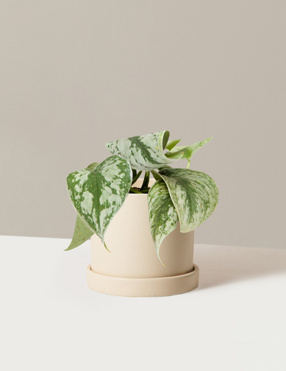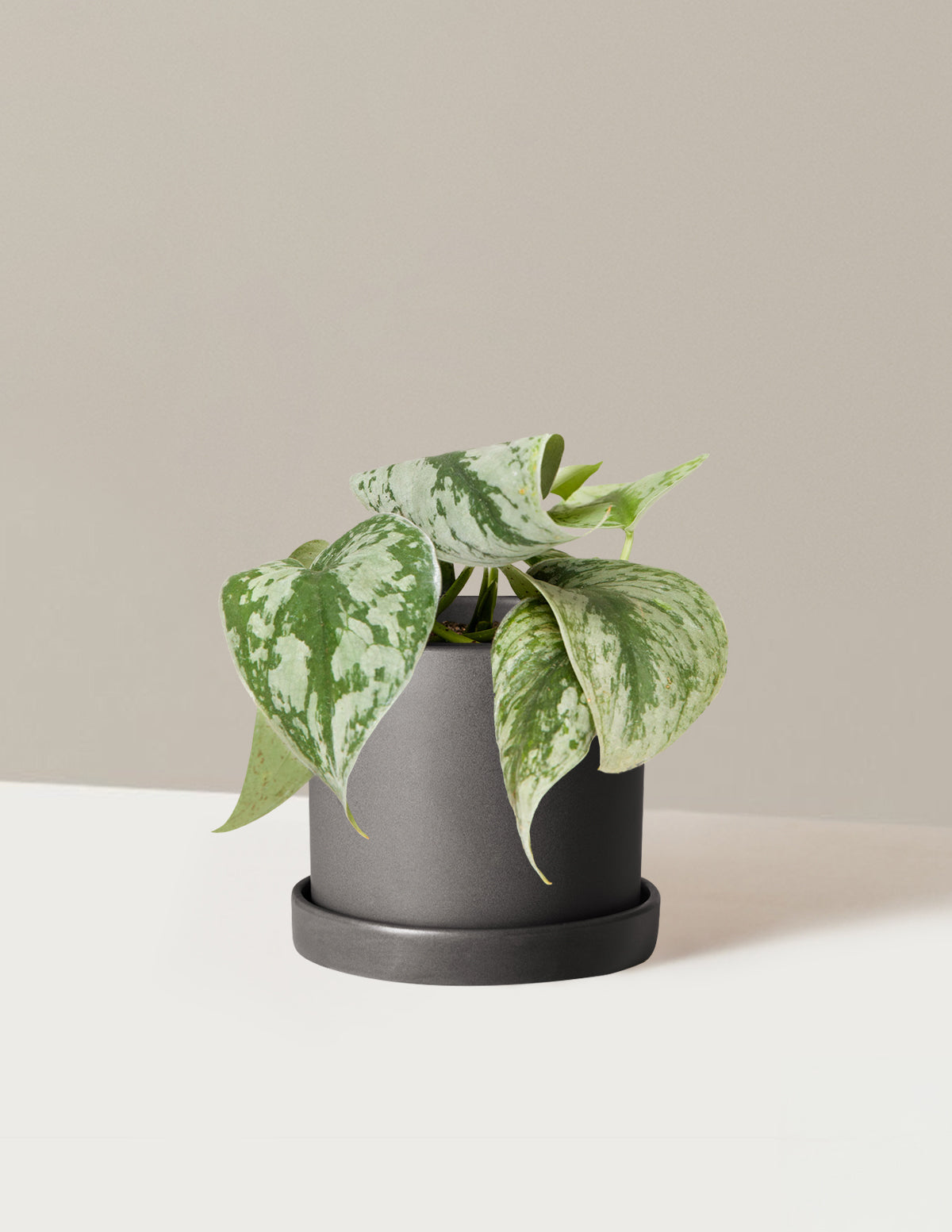 With soft green leaves speckled in silver, the Satin Pothos grows quickly and easily indoors, brightening shelves, hanging planters, or desktops with trailing vines.