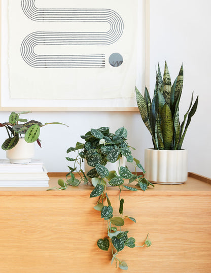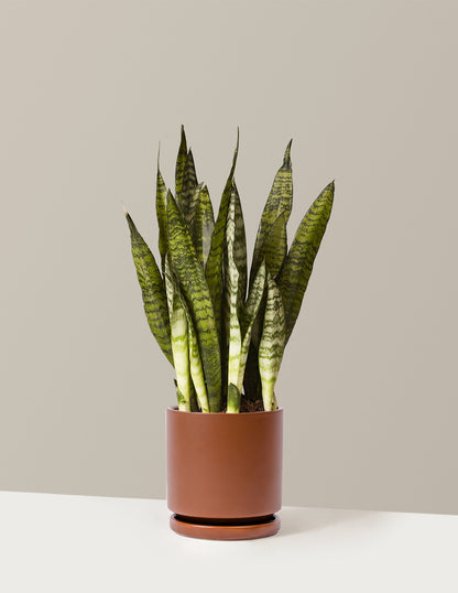 The Snake Plant Zeylanica is a succulent plant characterized by its upright sword-like leaves with light green horizontal stripes. It is popular for its incredibly easy-going nature (it can tolerate low light and drought) and its air-purifying capabilities. The easiest way to kill this plant is to over-care for it.