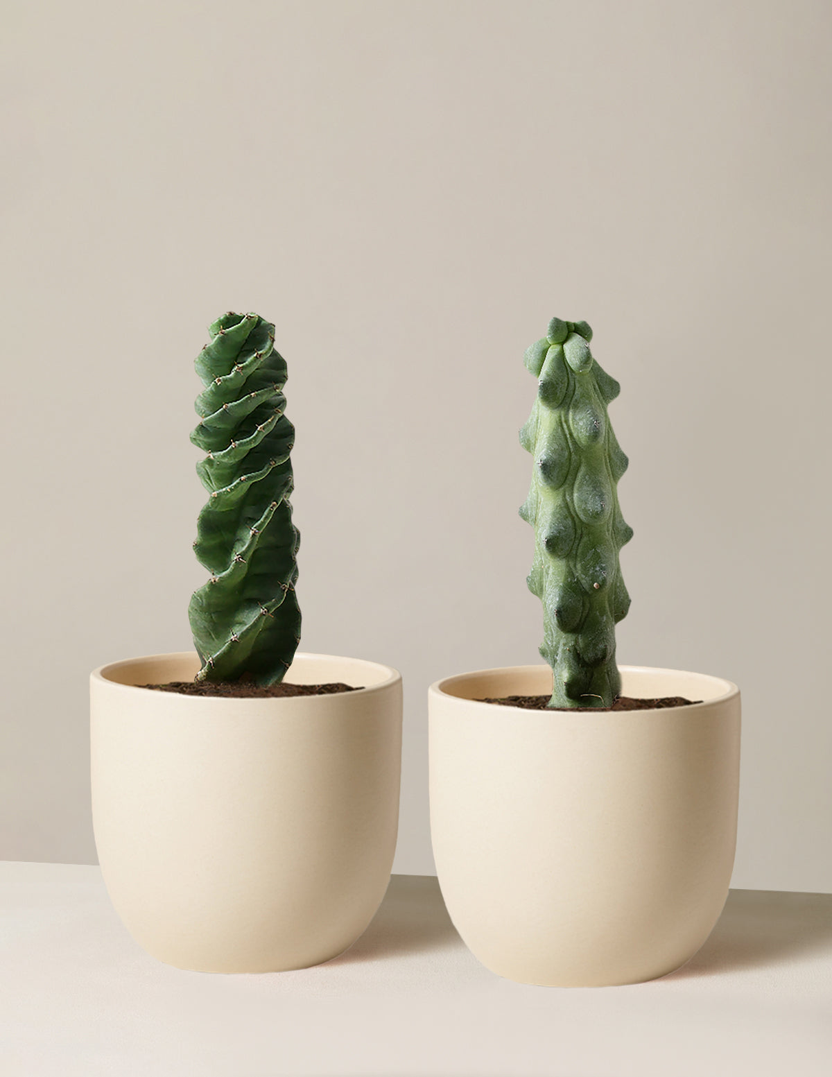 Featuring the curvy Boobie Cactus and twisting Spiral Cactus, this Rare Duo is great for collectors, gifting, or sun-filled plant shelves.