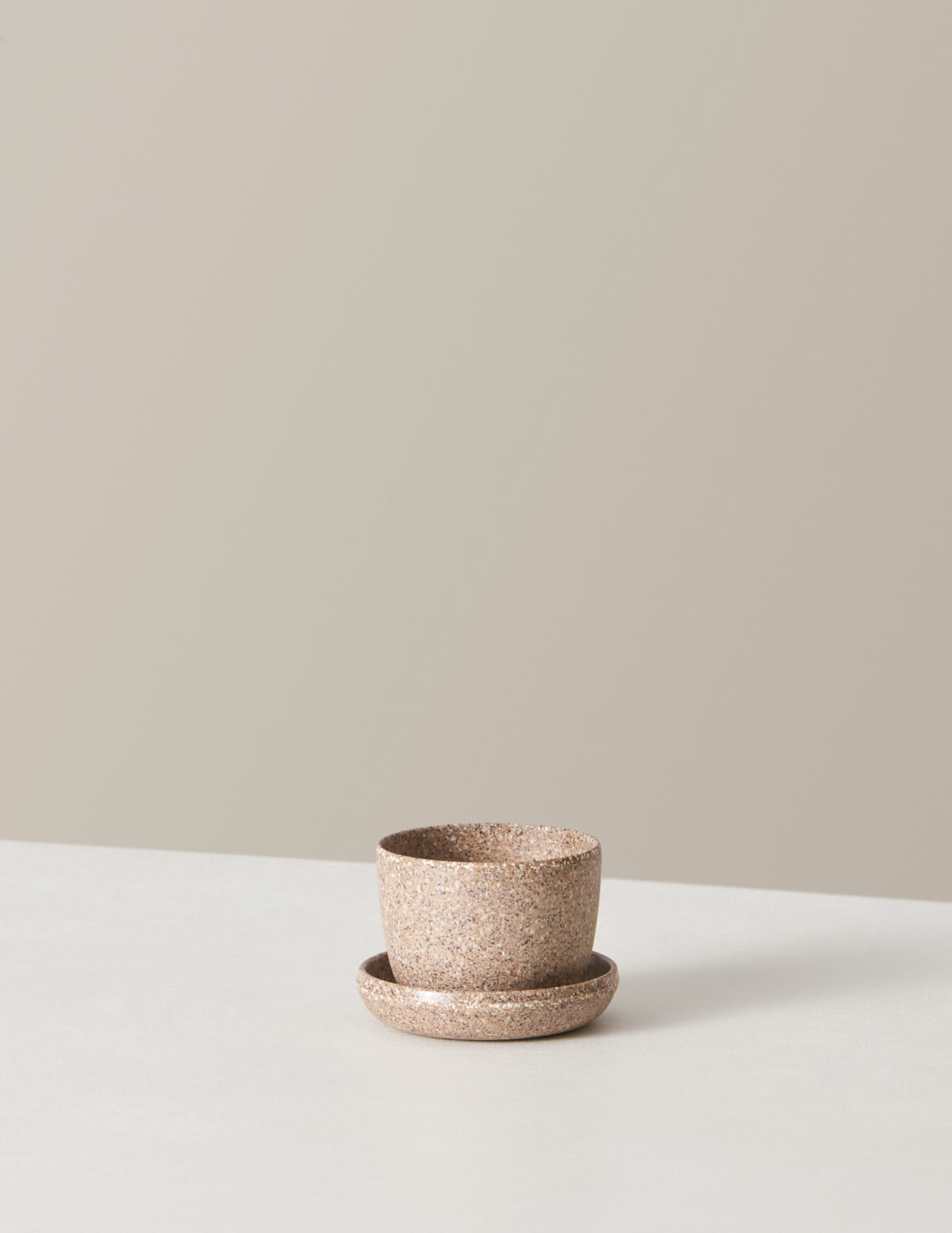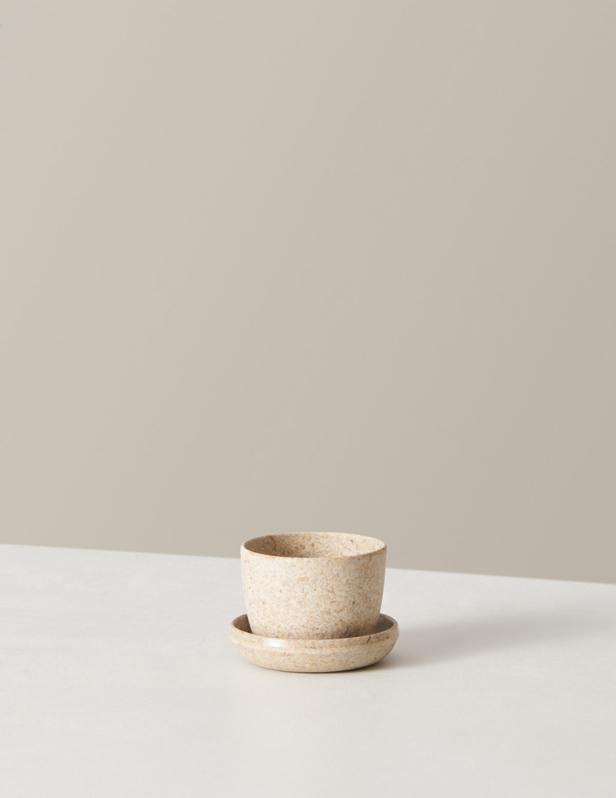 Upcycled Planters transform useless and unwanted materials into beautiful and functional vessels for your plants. They are made from agricultural by-products and natural fibers—such as bamboo fiber, wheat husk, and coffee bean husk—and finished with a non-toxic, formaldehyde-free resin.
