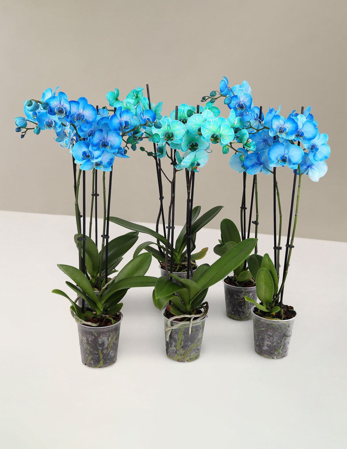 Choose from two color options: Assorted, with bold blooms in pink, purple, blue, green, and orange; or Aqua, with a serene ombré of ocean blues. These unique colors come from a safe dyeing process. When they re-bloom, they’ll return to their natural white or light pink color.