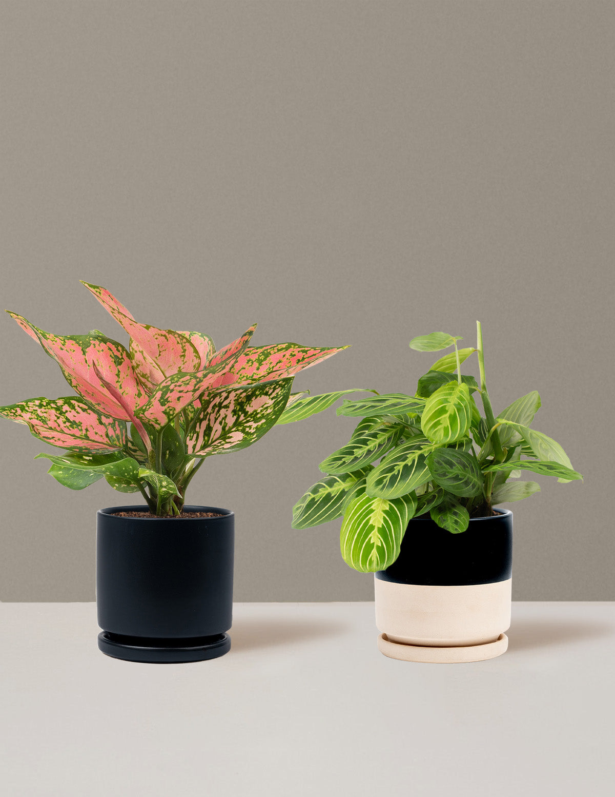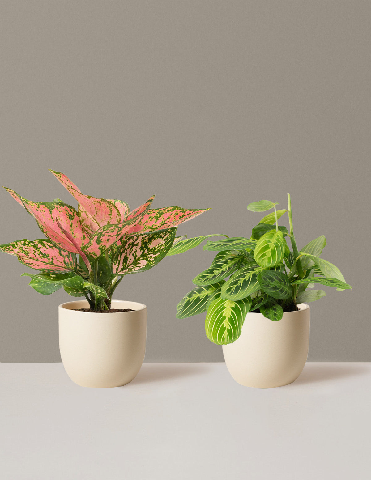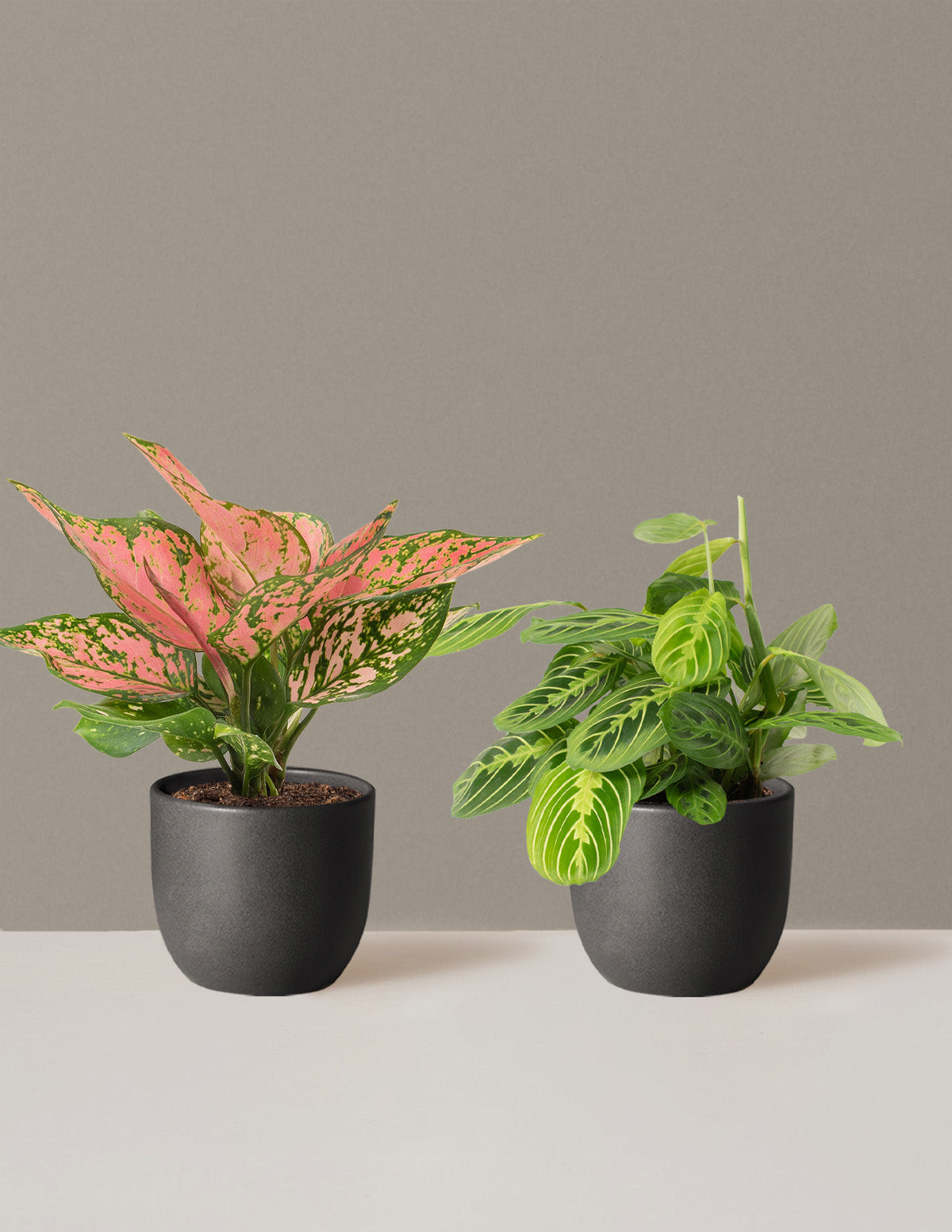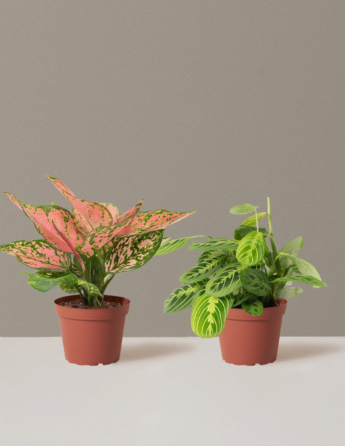 This duo includes two vibrant, easy-care houseplants that brighten spaces and lift moods with colorful, low-light tolerant foliage.