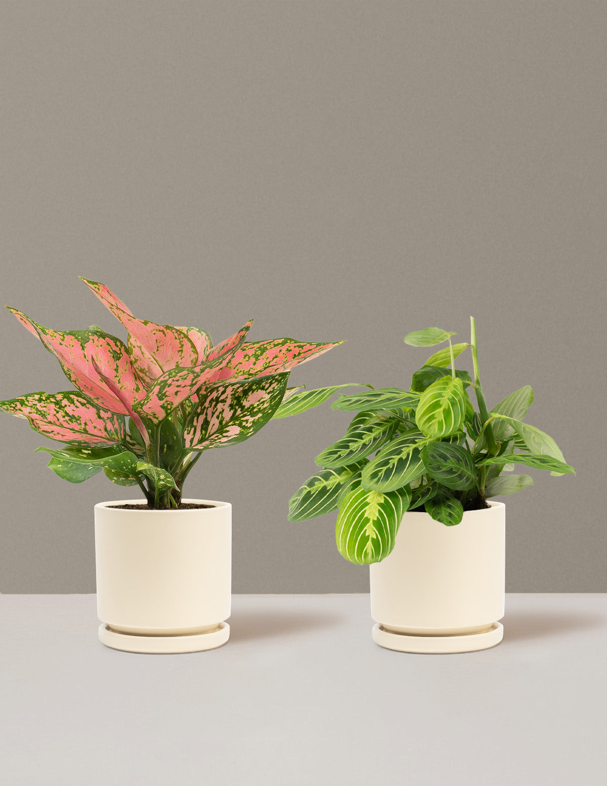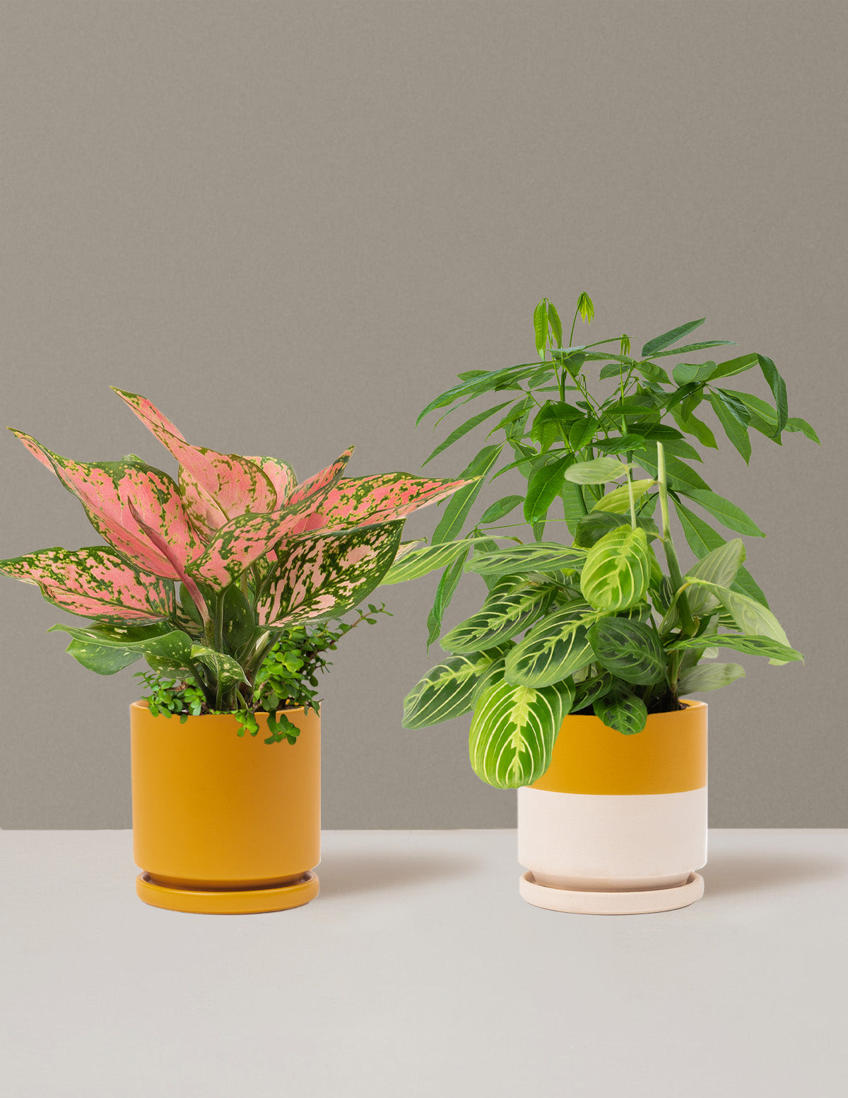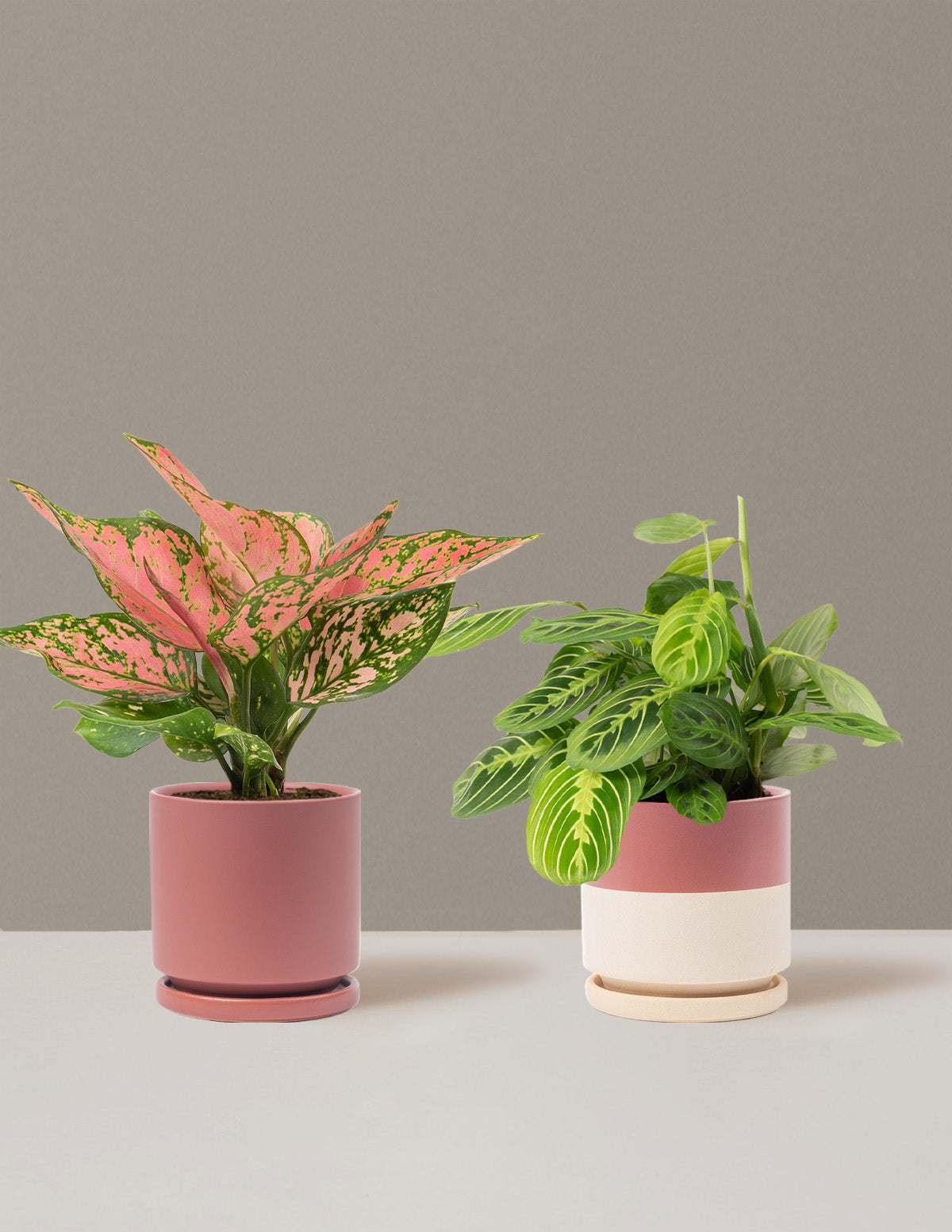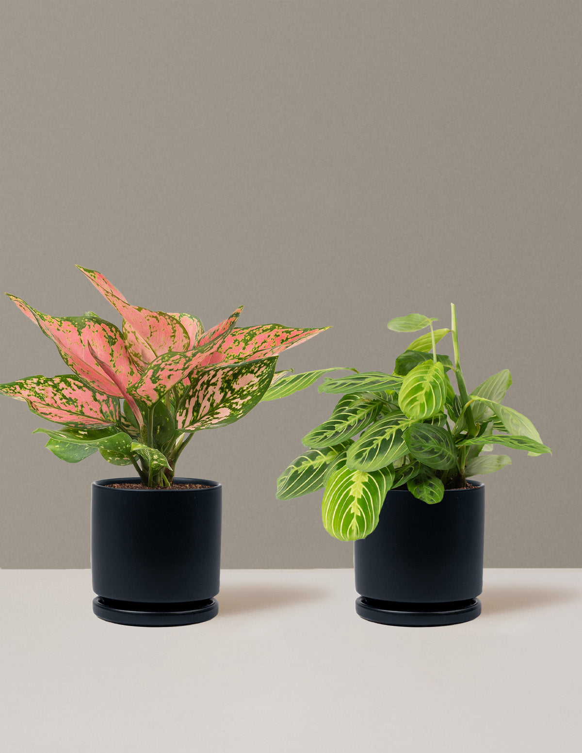 This duo includes two vibrant, easy-care houseplants that brighten spaces and lift moods with colorful, low-light tolerant foliage.