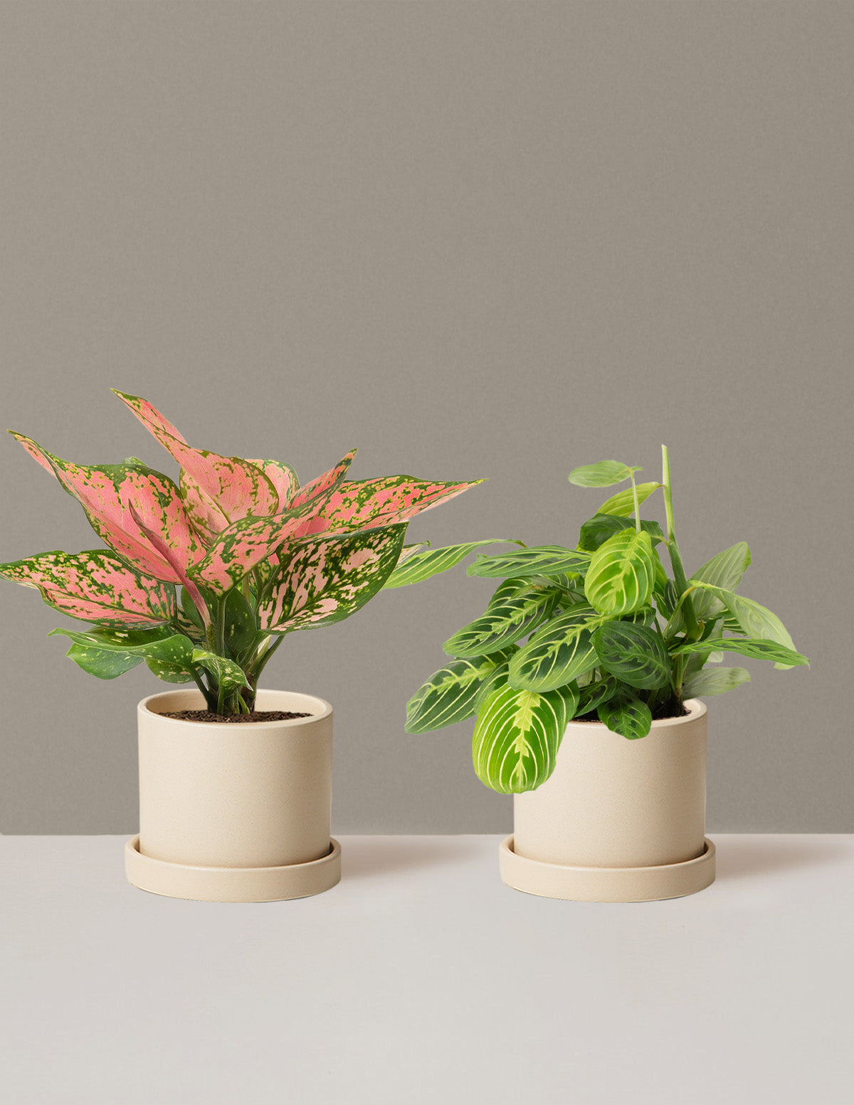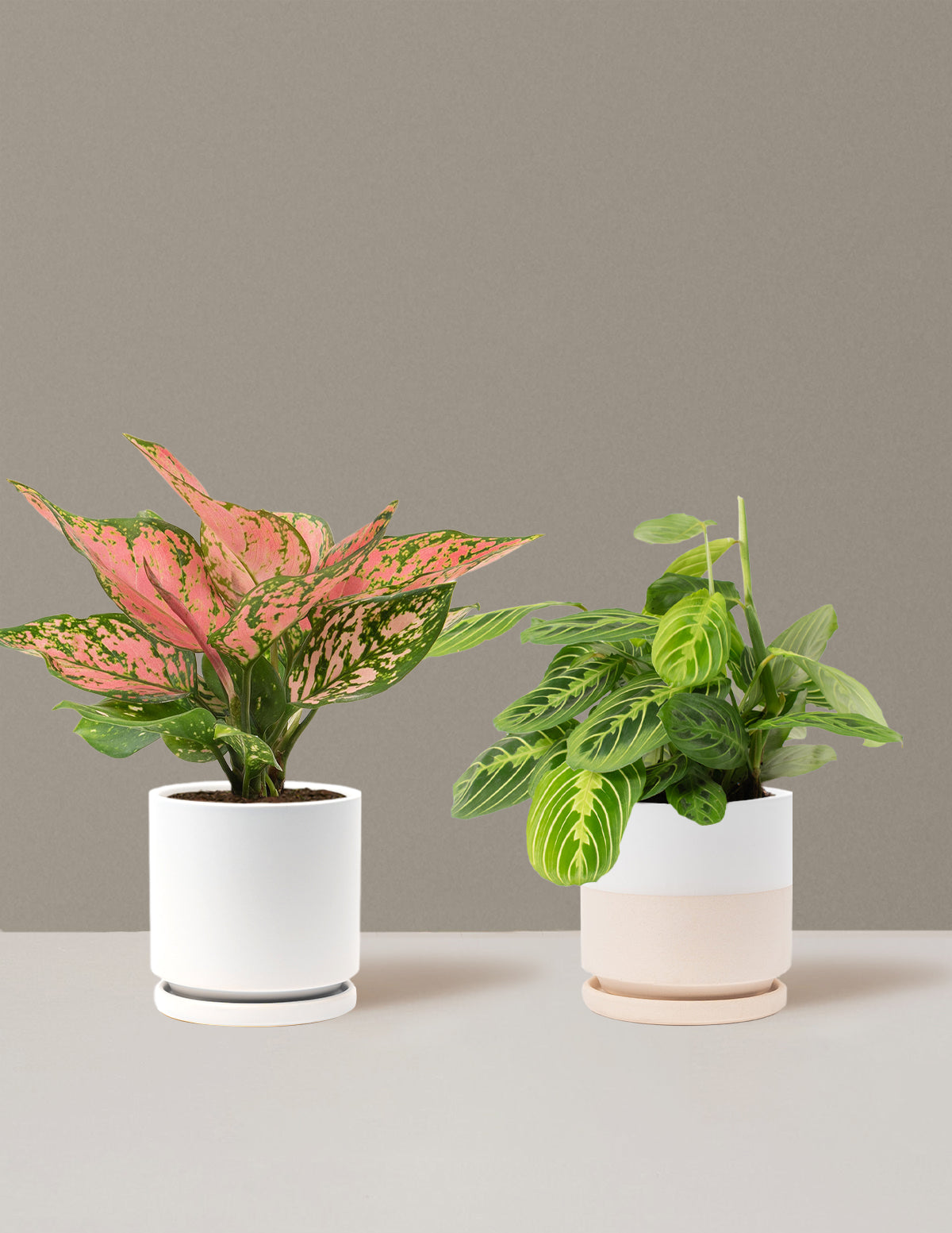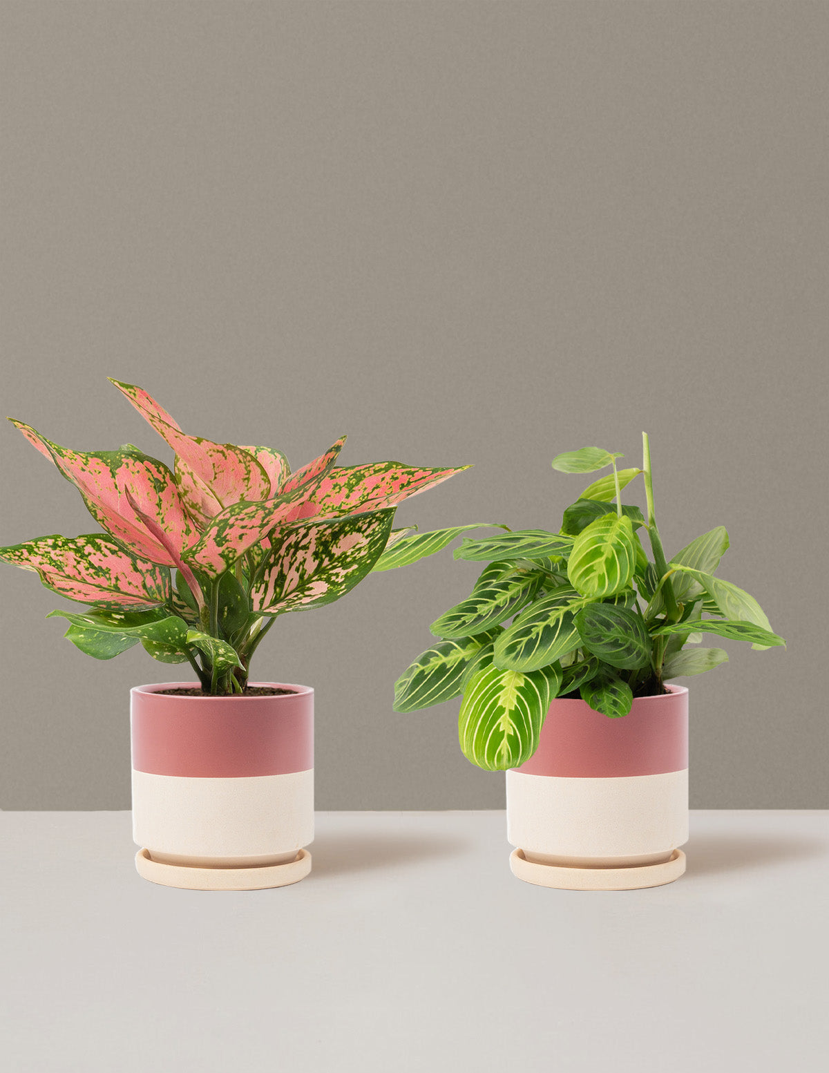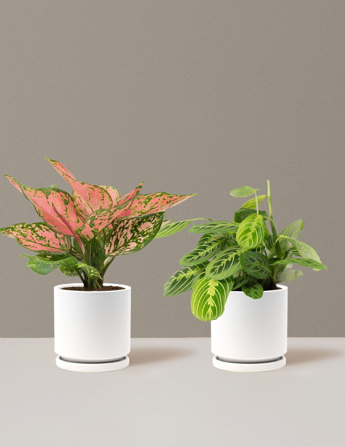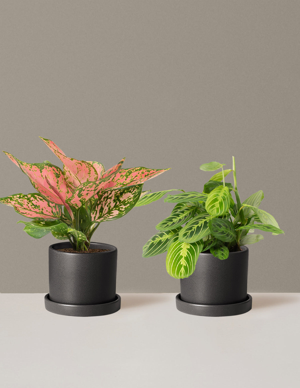 This duo includes two vibrant, easy-care houseplants that brighten spaces and lift moods with colorful, low-light tolerant foliage.