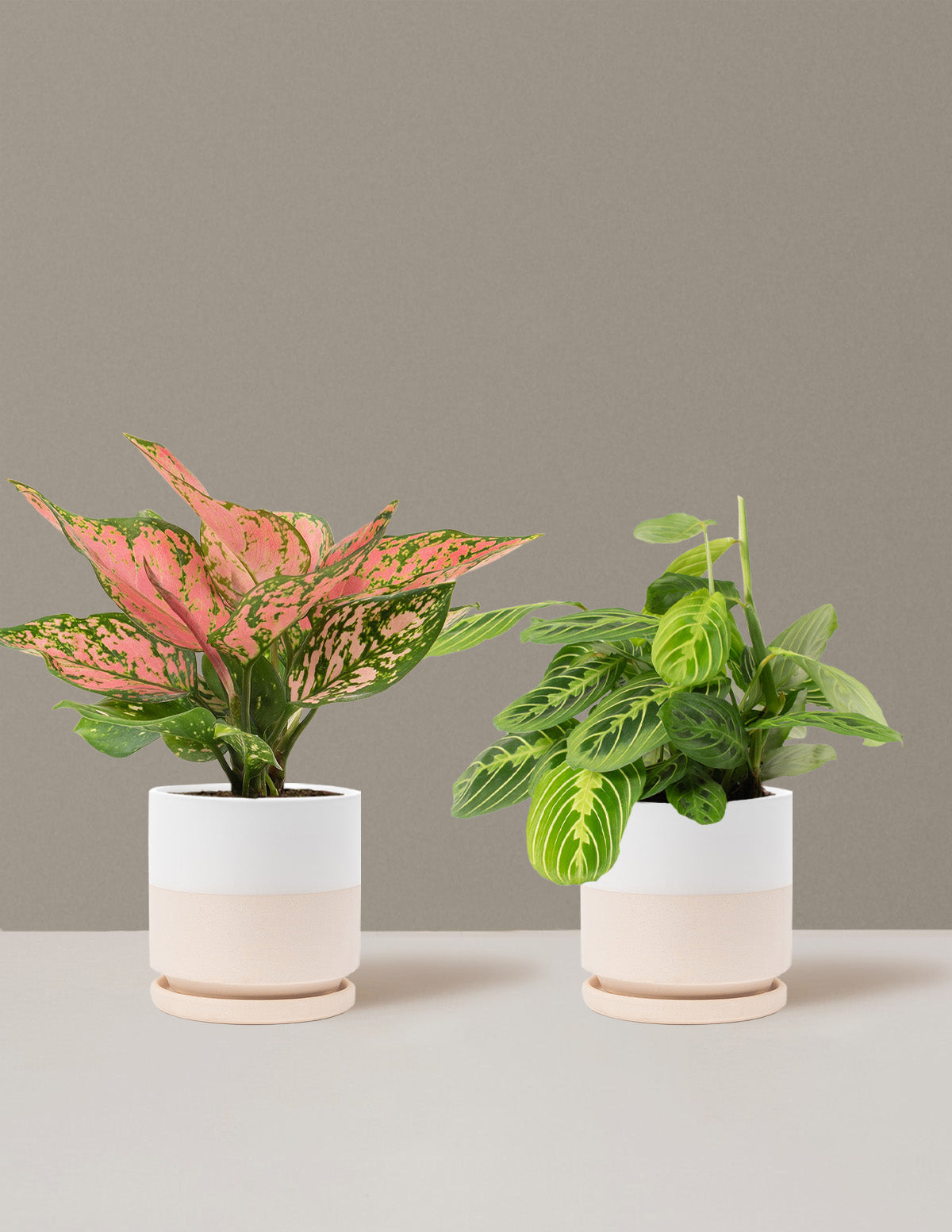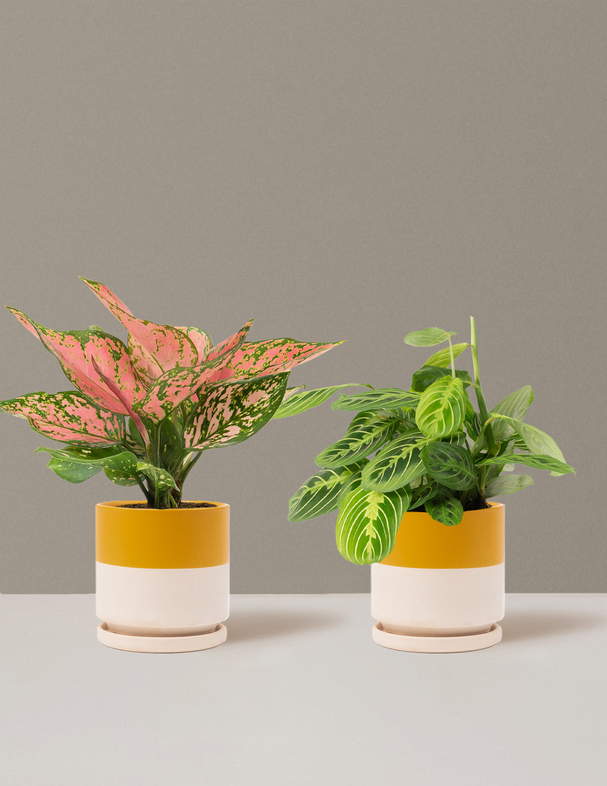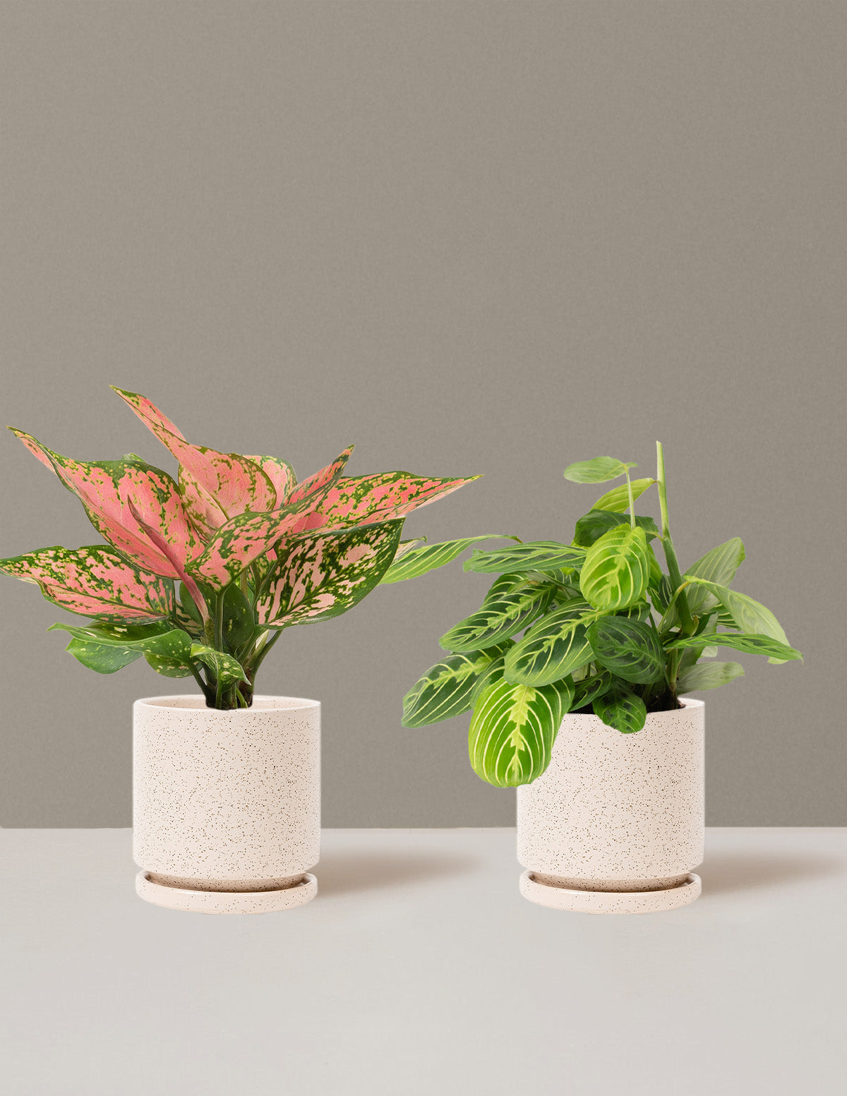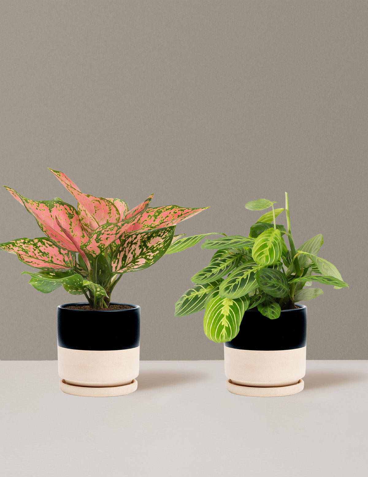 This duo includes two vibrant, easy-care houseplants that brighten spaces and lift moods with colorful, low-light tolerant foliage.